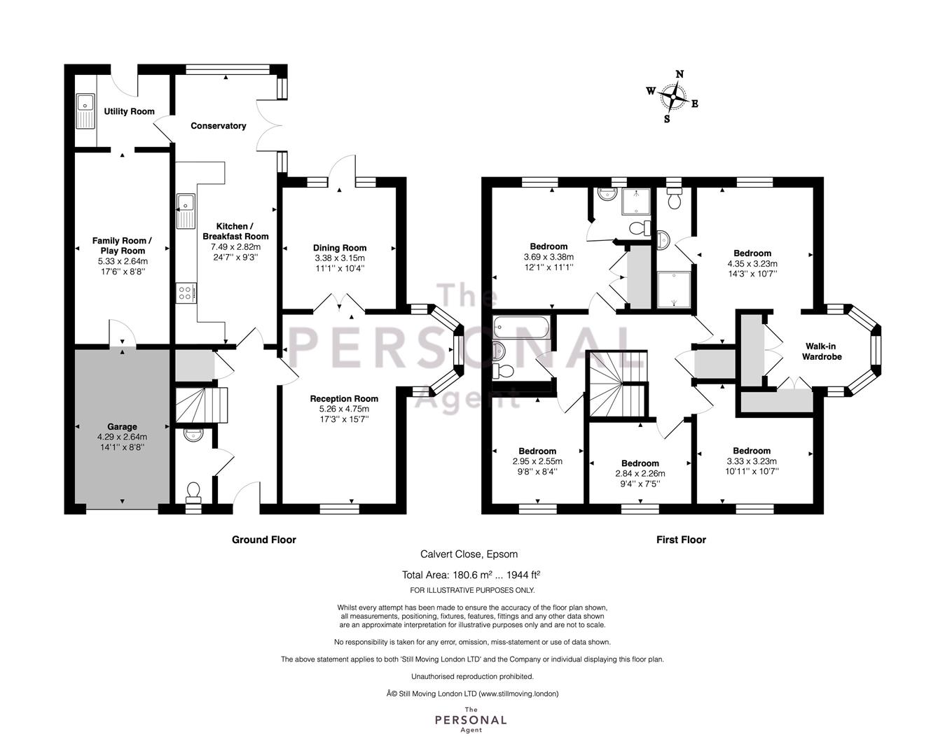 The ground floor accommodation is flexible to suit the changing needs of family life. The dual aspect lounge has double doors opening to the dining room which in turn has double doors to the separate kitchen/breakfast room and conservatory making this a free-flowing home suitable for all occasions. In addition there is a separate family room/play room which is a fantastic bonus space, downstairs WC and a utility room.
