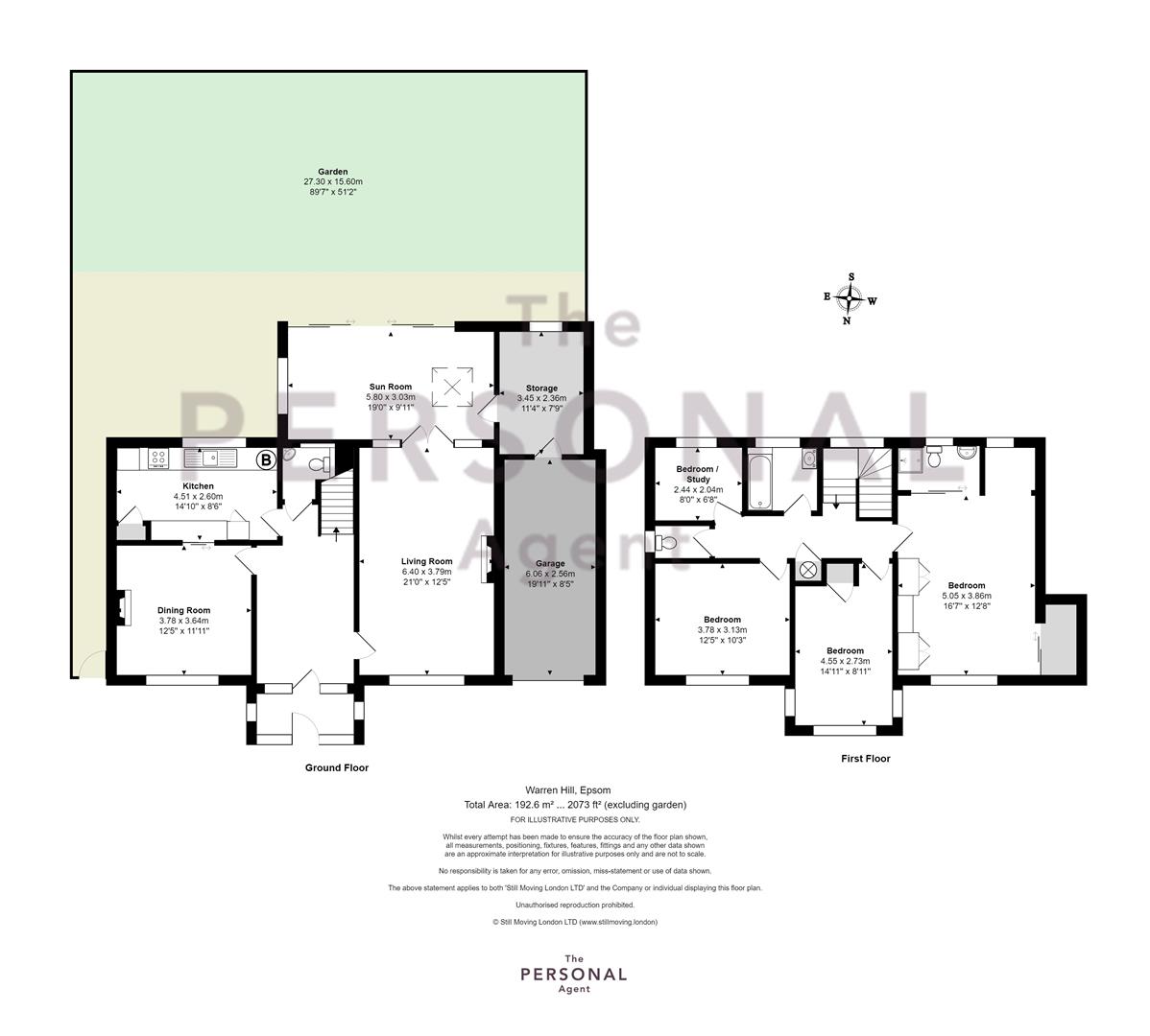 - 77ft x 52ft South facing garden