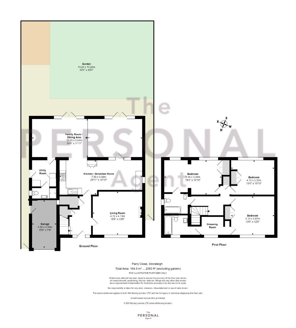 The Personal Agent are delighted to welcome to the market this stunning family home set within a highly desirable cul de sac within Stoneleigh. The property comprises an entrance hall with access to under stairs storage and doors to; Front aspect living room with feature fireplace, 25ft kitchen/breakfast room with a range of cupboards and drawers, granite work surfaces with inset sink, and space for Range oven and American style fridge/freezer. Rear aspect 34ft family/dining room with two sets of doors opening to the garden, access to to the utility room with a side access door and door to the downstairs shower room.