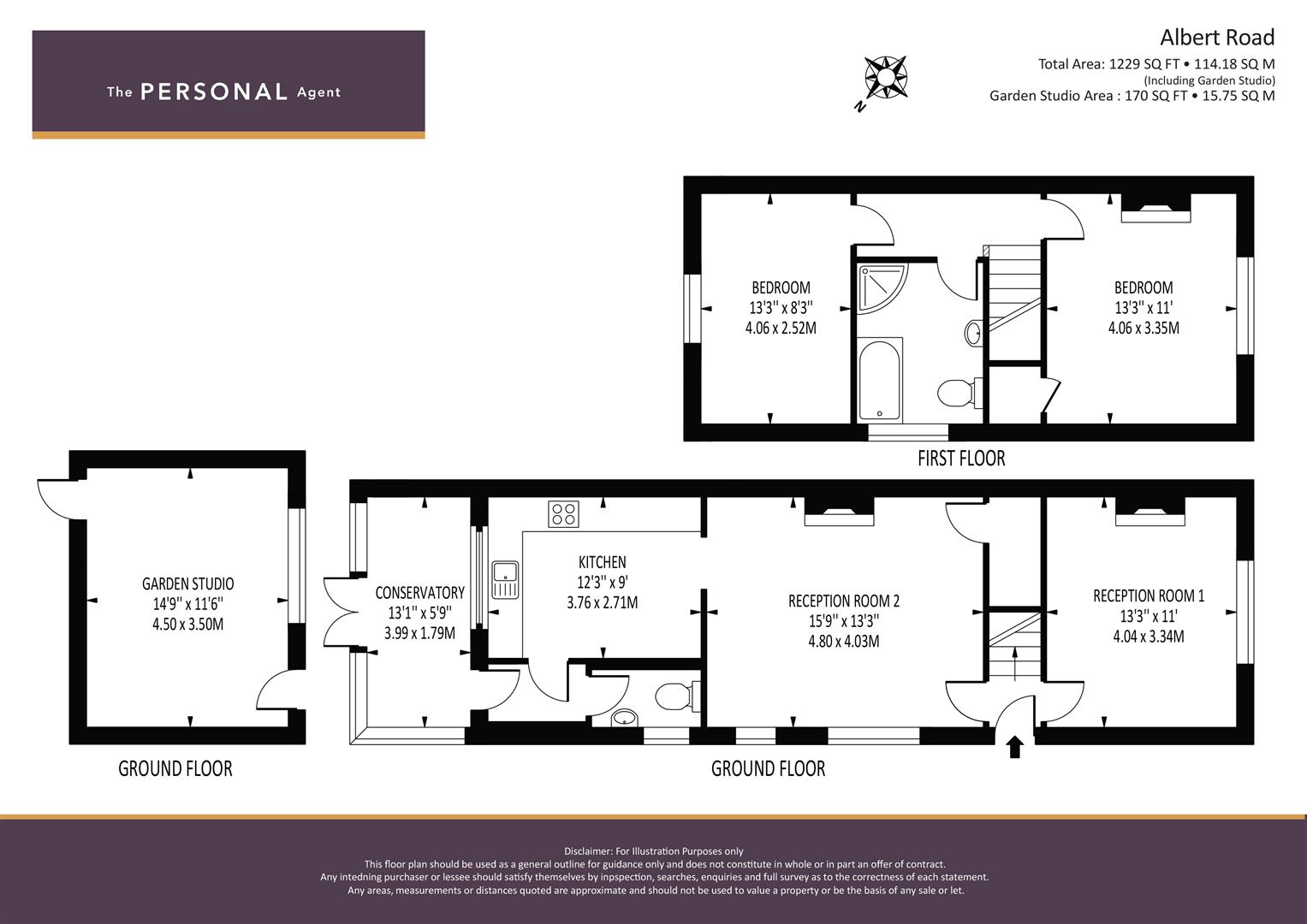- 120ft rear garden with detached studio