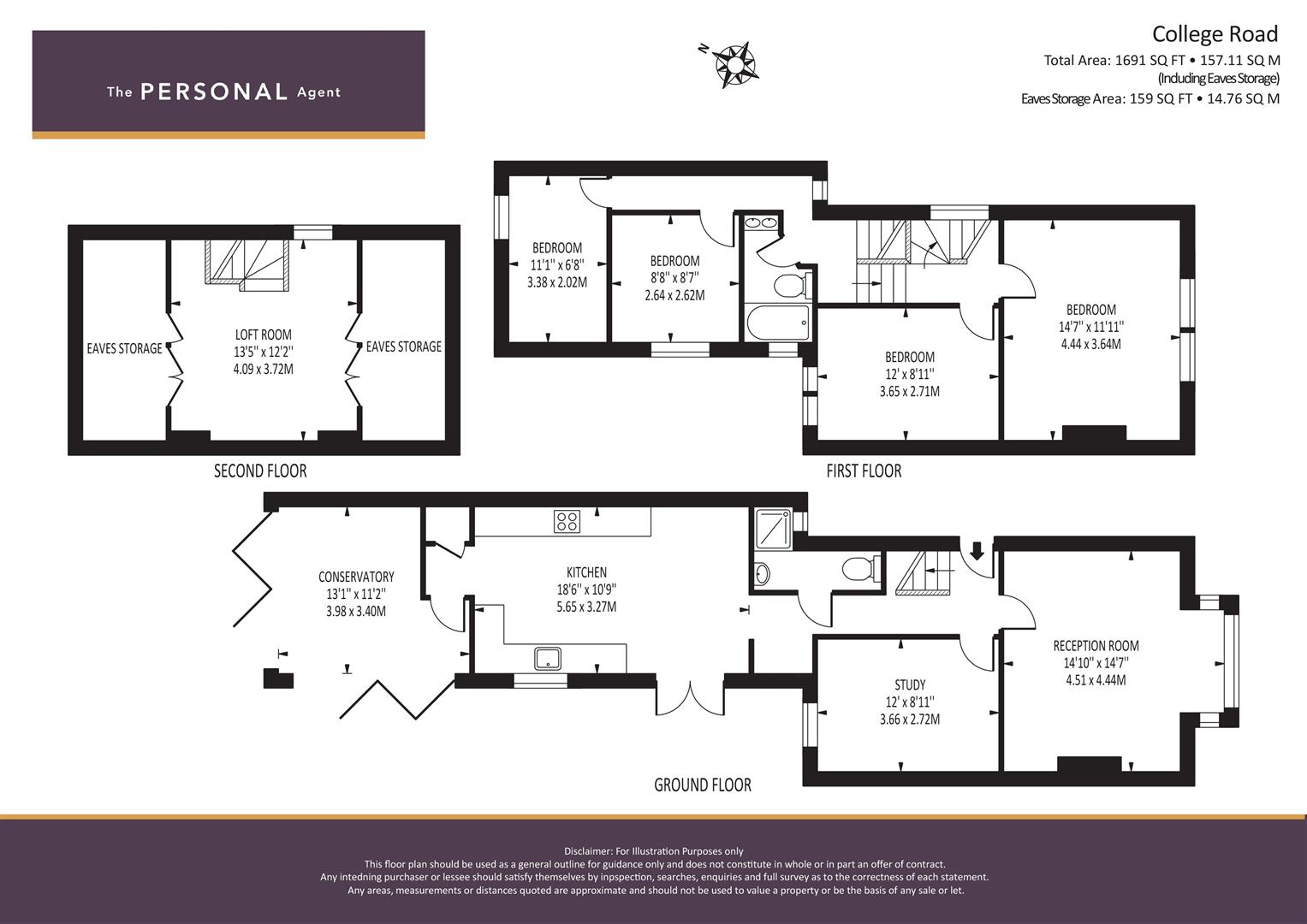 - Four flexible bedrooms & loft room/study