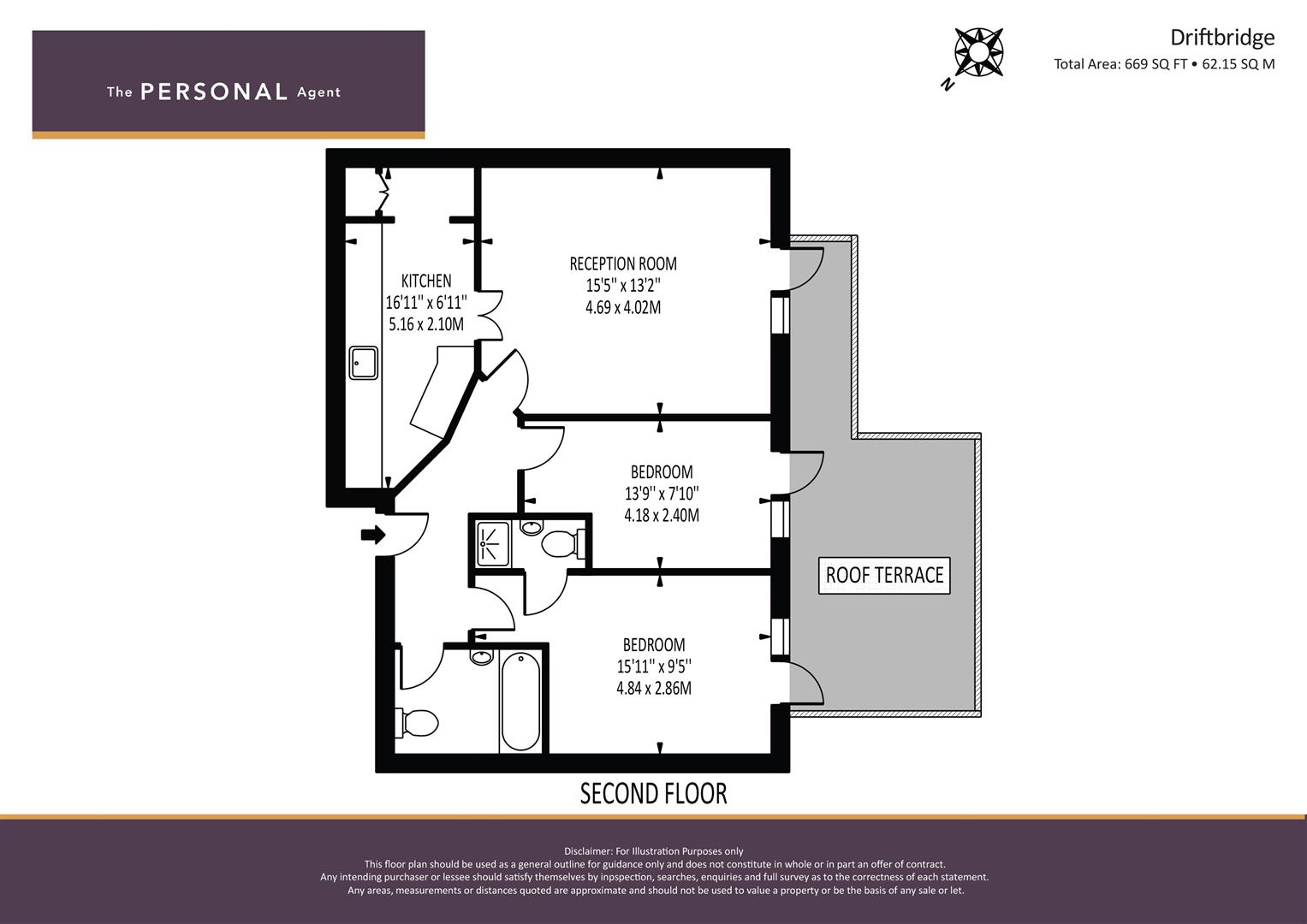 The Personal Agent are delighted to offer to the market this spacious top floor luxury apartment, the property boasts a private roof terrace that can be accessed not only from the reception area but also the two double bedrooms, there is a 15ft x 13ft living/dining room, contemporary kitchen with breakfast bar, integrated appliances and handy utility area, ensuite shower room and luxury bathroom. Further noteworthy points to mention include an allocated parking space and excellent road and rail access to London and the M25.
