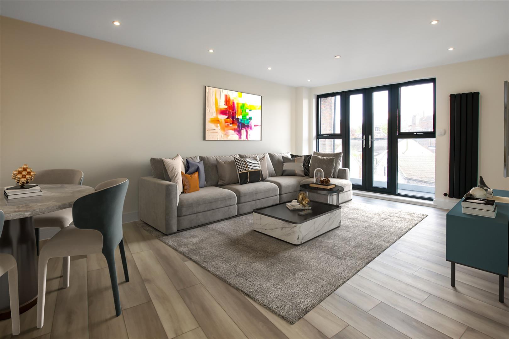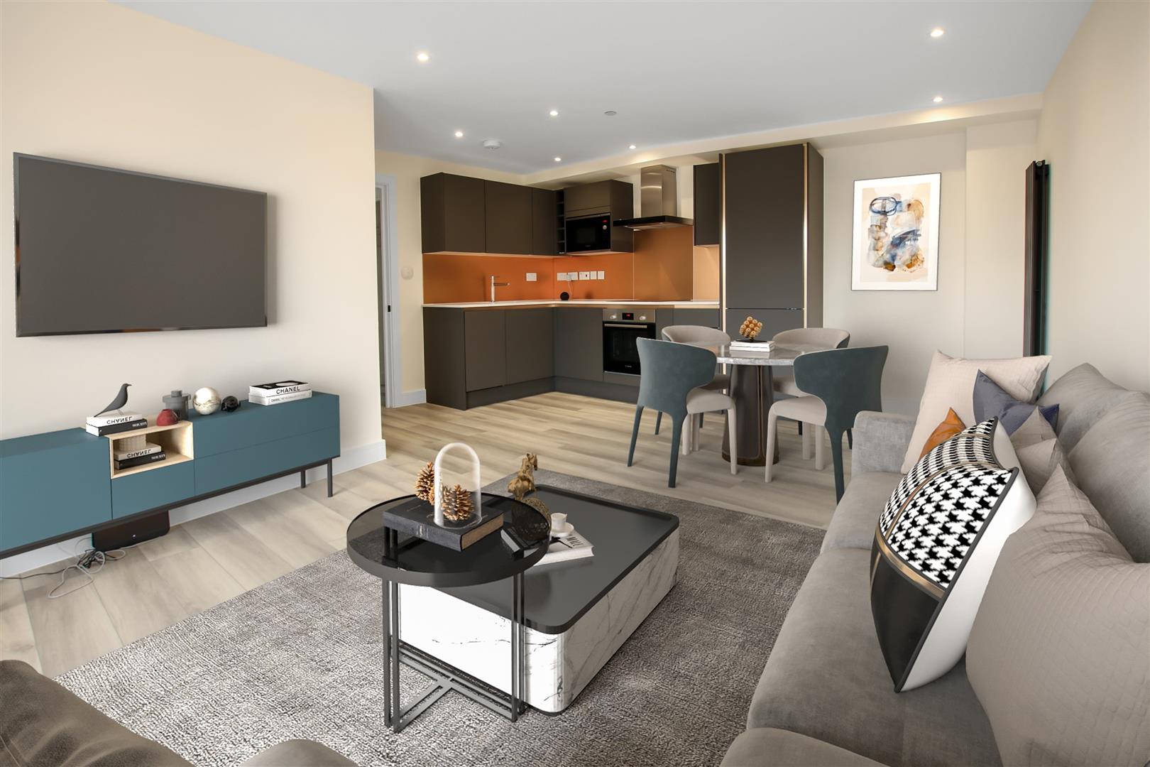 This well proportioned apartment enjoys a 19ft x 15ft open plan lounge/kitchen/diner with patio doors to a private balcony.