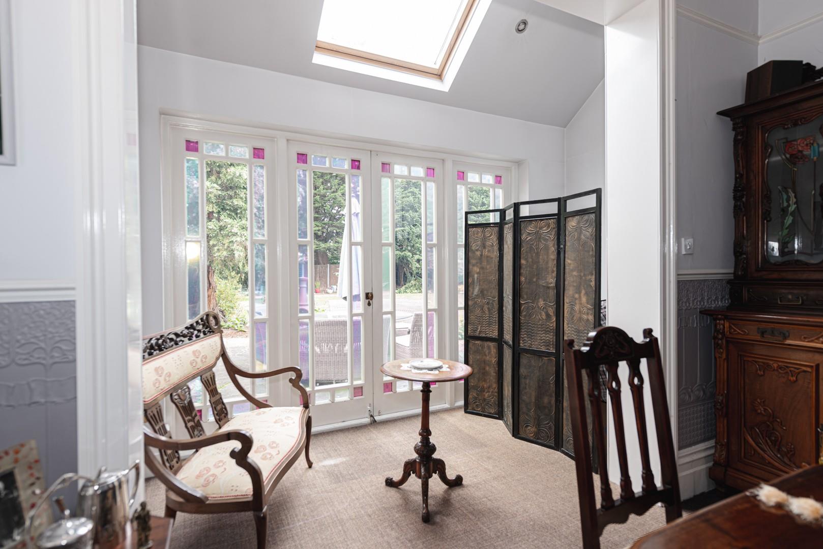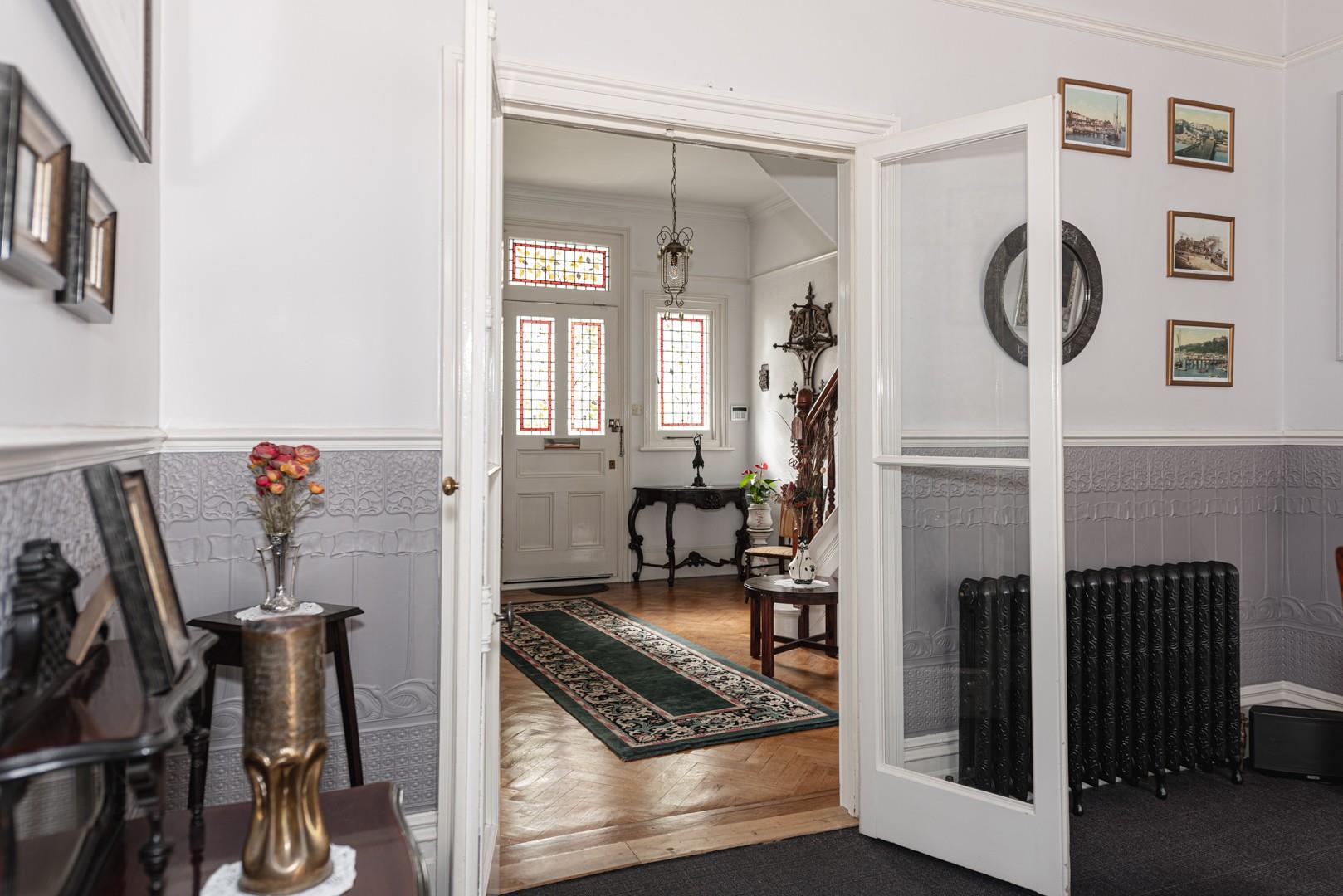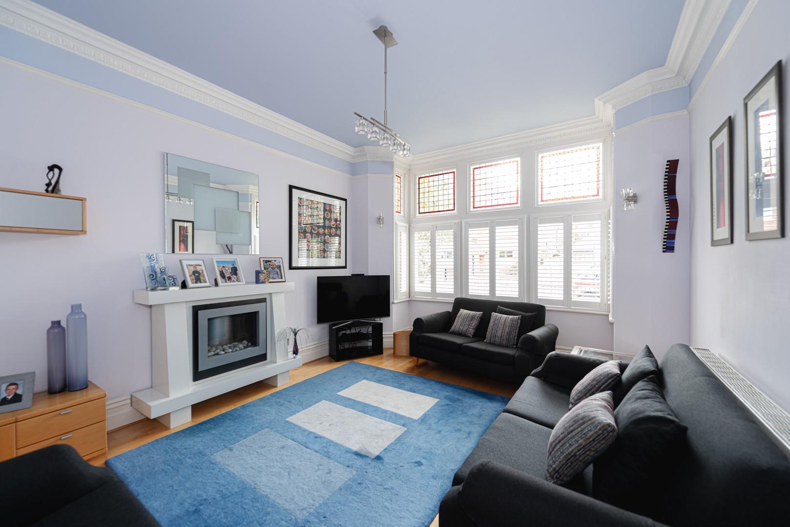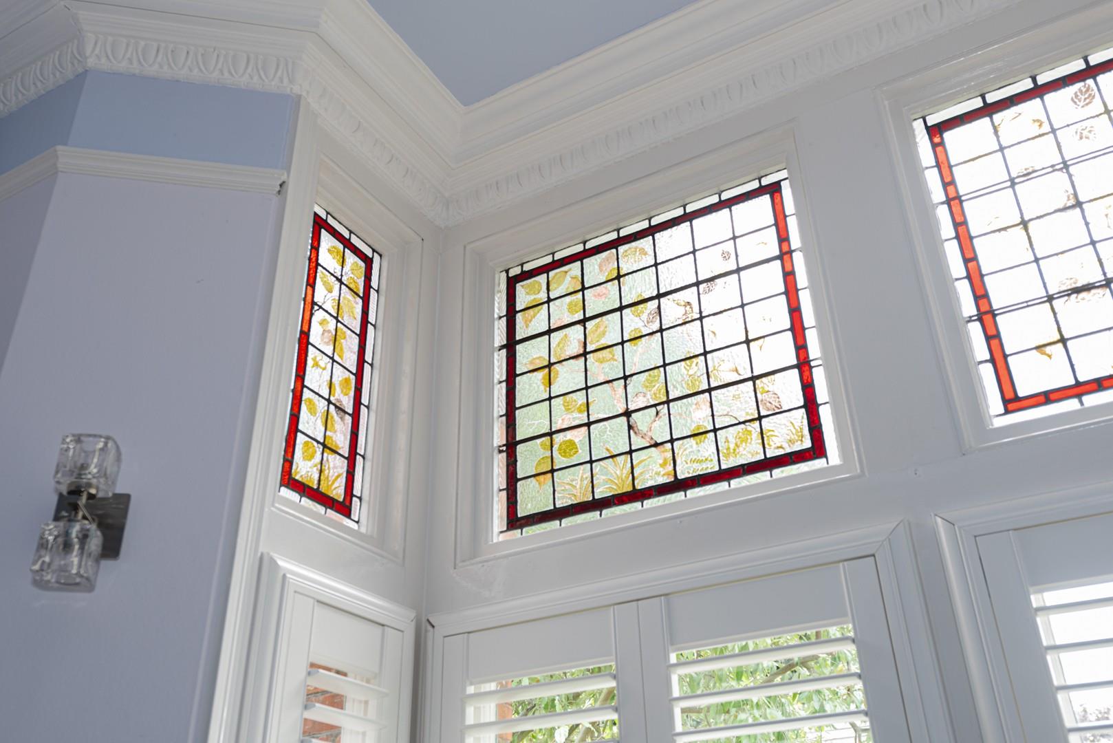 There are 10ft high ceilings throughout the ground floor, including in the extended rear reception room and the lounge to the front with its stained glass bay window.