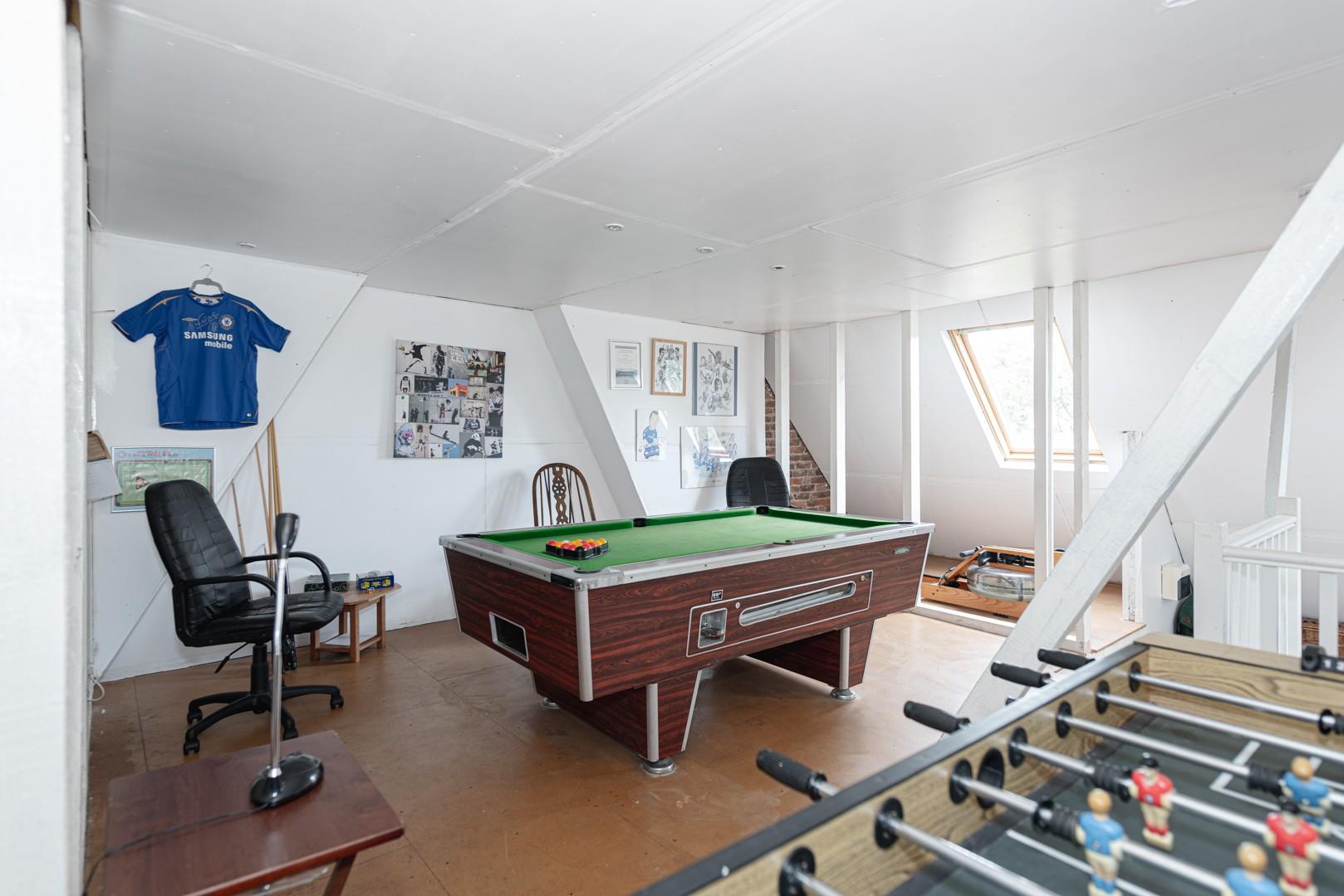The 36 x 27ft loft room is currently used as a games room and offers huge potential for conversion into further (official) living accommodation, subject to the usual planning consents and approval.