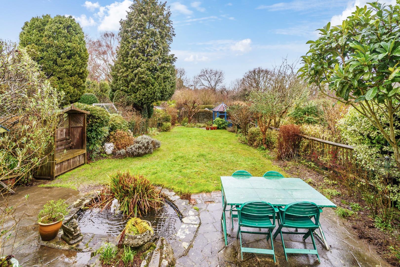 - Mature rear garden with pond and array of fruit trees