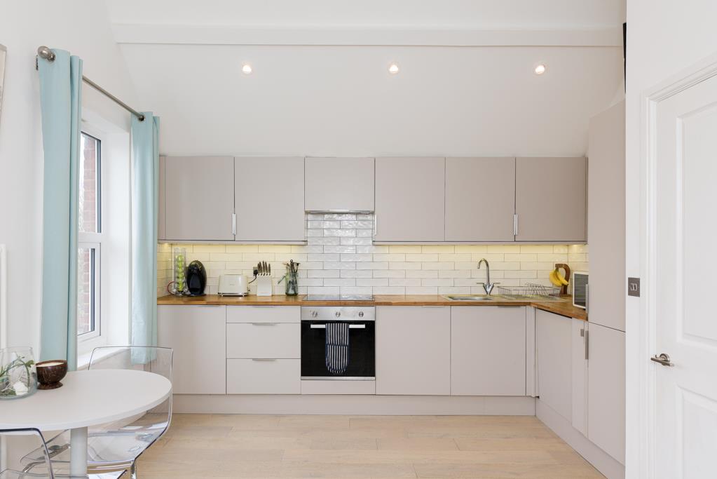 Located within the heart of Epsom town centre and just a stone’s throw of the High Street, railway station, shops and restaurants. This stylish and bright one double bedroom Victorian conversion enjoys a clever modern design with impressive vaulted ceilings and a huge amount of natural light throughout.