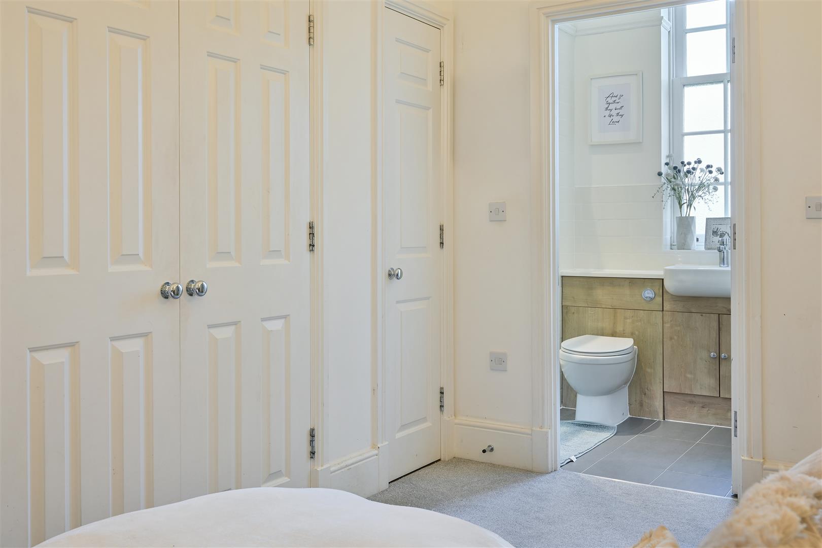 Arranged over two thoughtfully designed levels, the first floor offers two generous double bedrooms, both benefitting from fitted wardrobes and high level storage, along with a beautifully appointed family bathroom. The principal bedroom provides a calm and comfortable retreat, complete with its own luxurious en suite shower room.