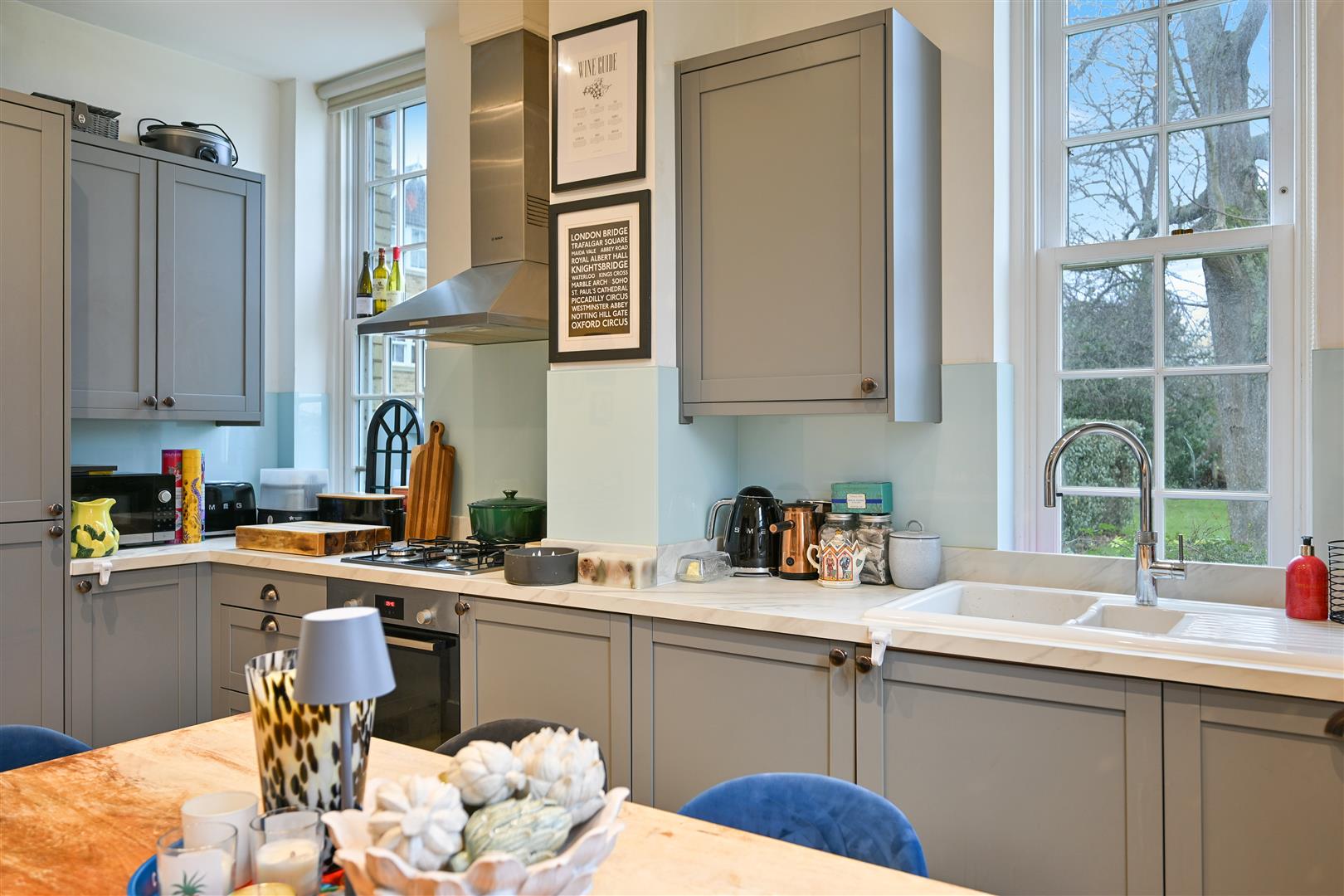- High ceilings & sash windows throughout