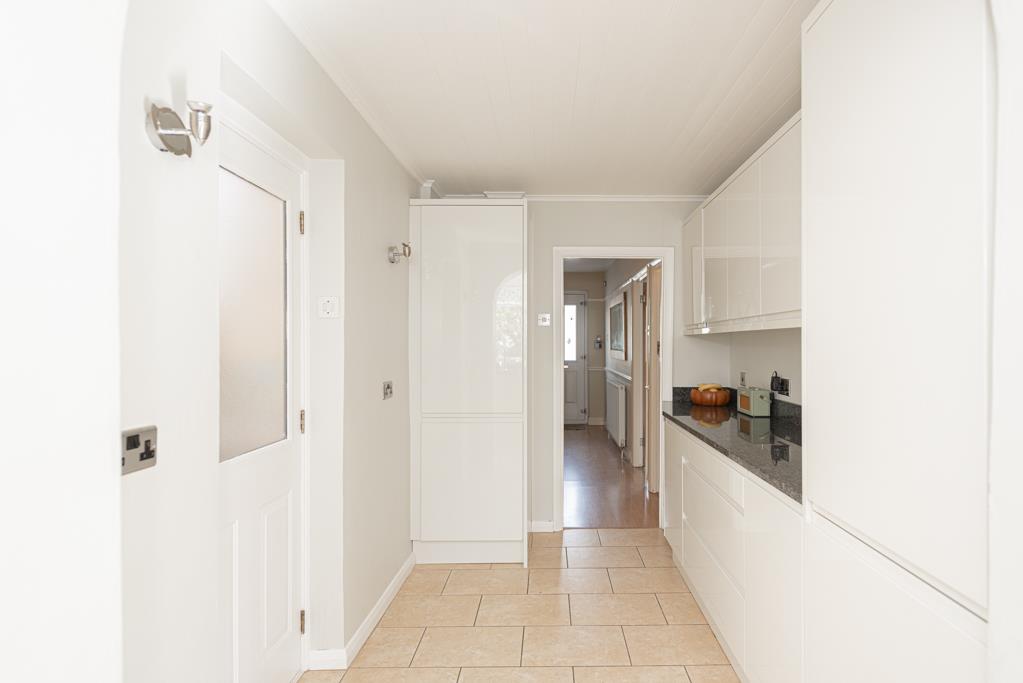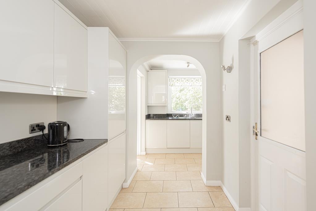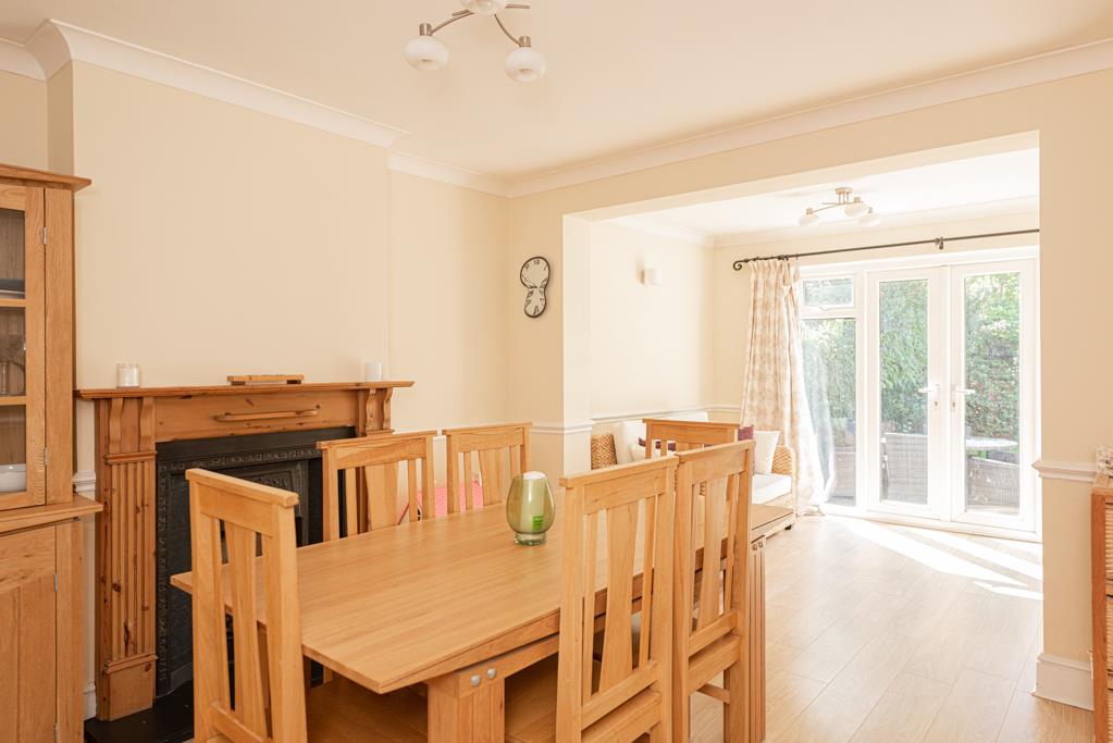 The property offers two reception rooms including the lounge with fireplace to the front, and the extended dining room to the rear with double doors to the garden. A new stylish and contemporary kitchen with granite work surfaces was installed last year, a door from which leads to a utility space behind the attached garage.