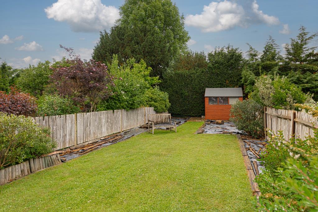 To the front of the property is a brick block driveway with side access to the garden and a detached garage which has power and water running to it. The garden is larger than average for the area and is mainly laid to lawn.