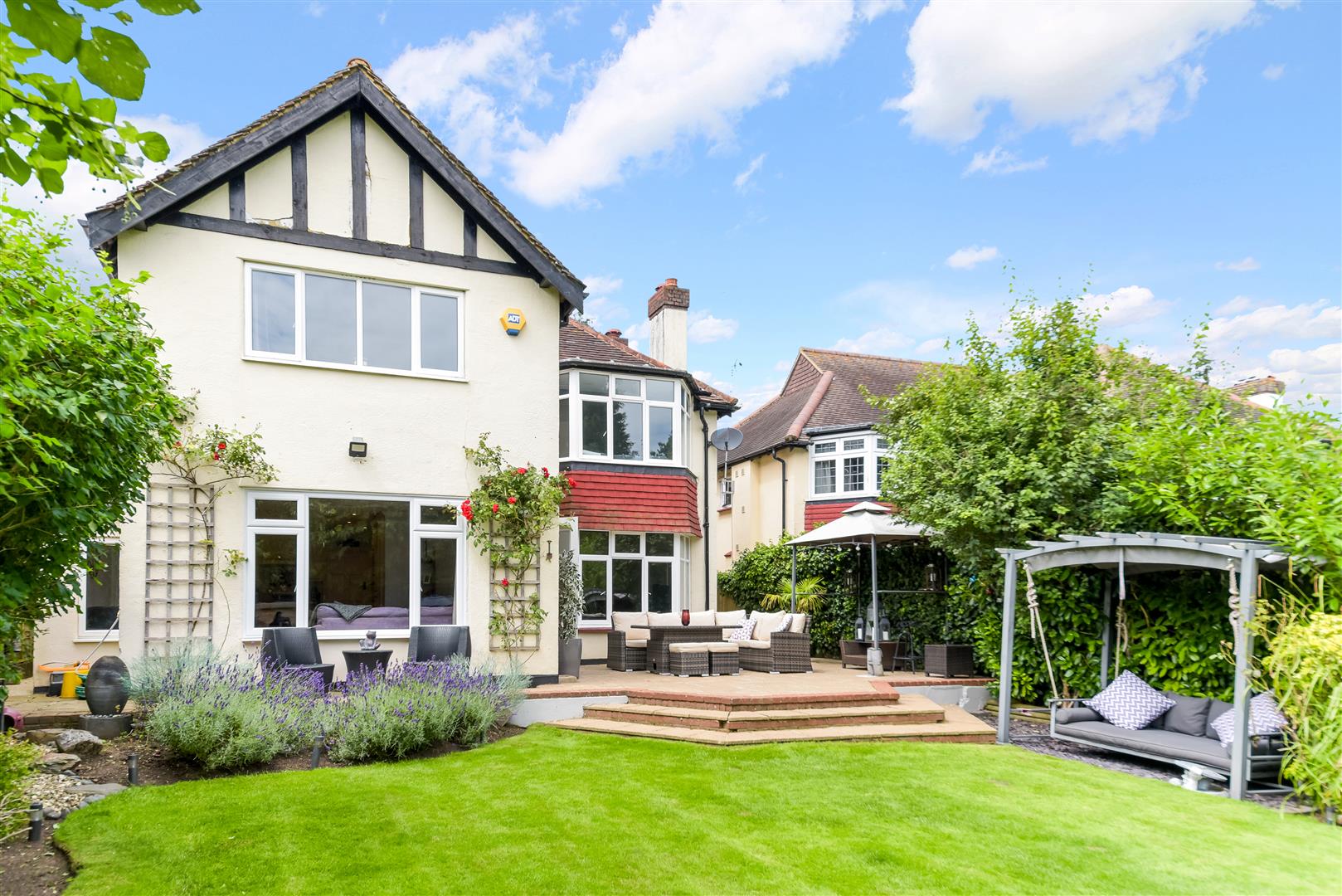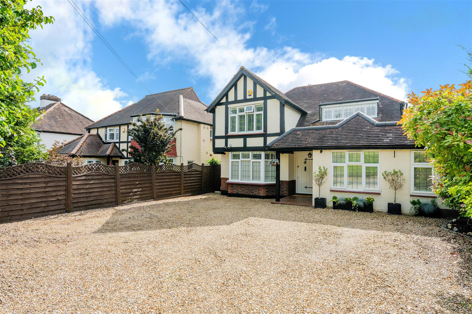 The property enjoys an approximate 0.2 acre plot with a large gated driveway to the front with parking for multiple cars, and a secluded and mature 117ft x 40ft South/Easterly rear garden with large terrace ideal for alfresco entertaining.