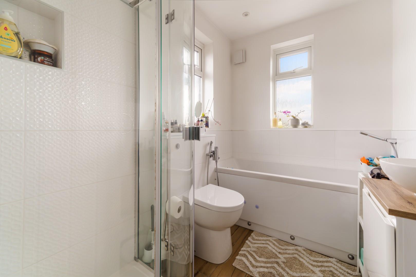On the first floor are three bedrooms consisting of two doubles and single, all with double glazed windows and radiators and modern family bathroom fitted in a matching suite in white.
