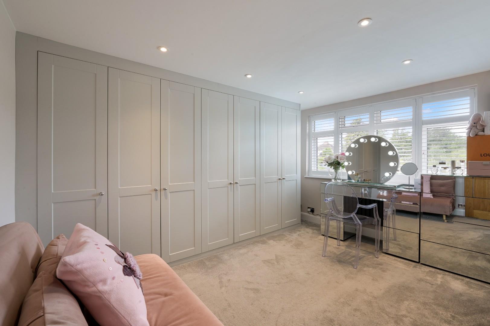 There are three good sized bedrooms all with double glazed windows and bespoke shutters, one of which is used as a dressing room fitted with floor to ceiling wardrobe cupboards and a there is modern family bathroom which serves the first floor bedrooms.