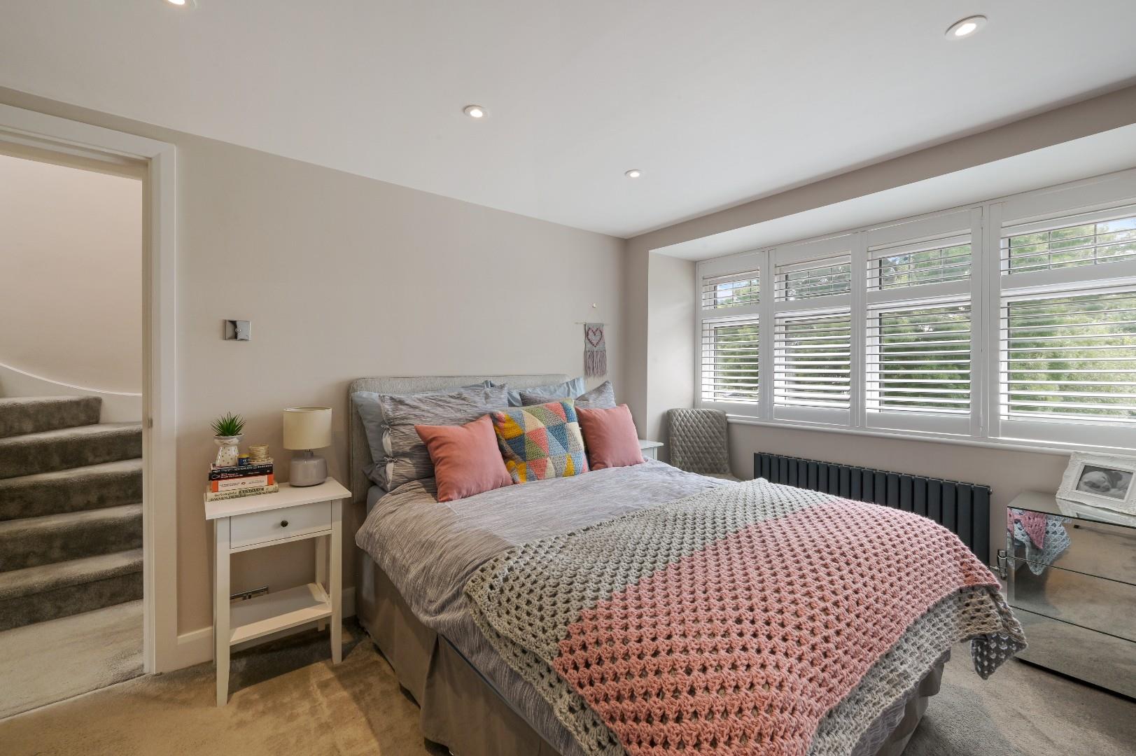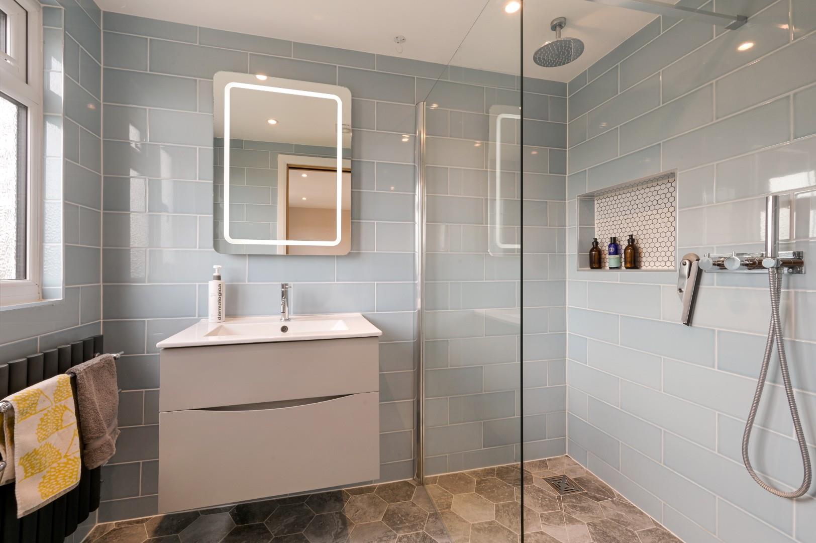 The master bedroom has been skilfully converted into the loft with a high ceiling and skylight window which provides a bright and spacious feel and a gorgeous en-suite with ‘wet room’ style shower.