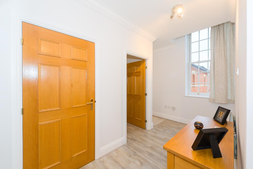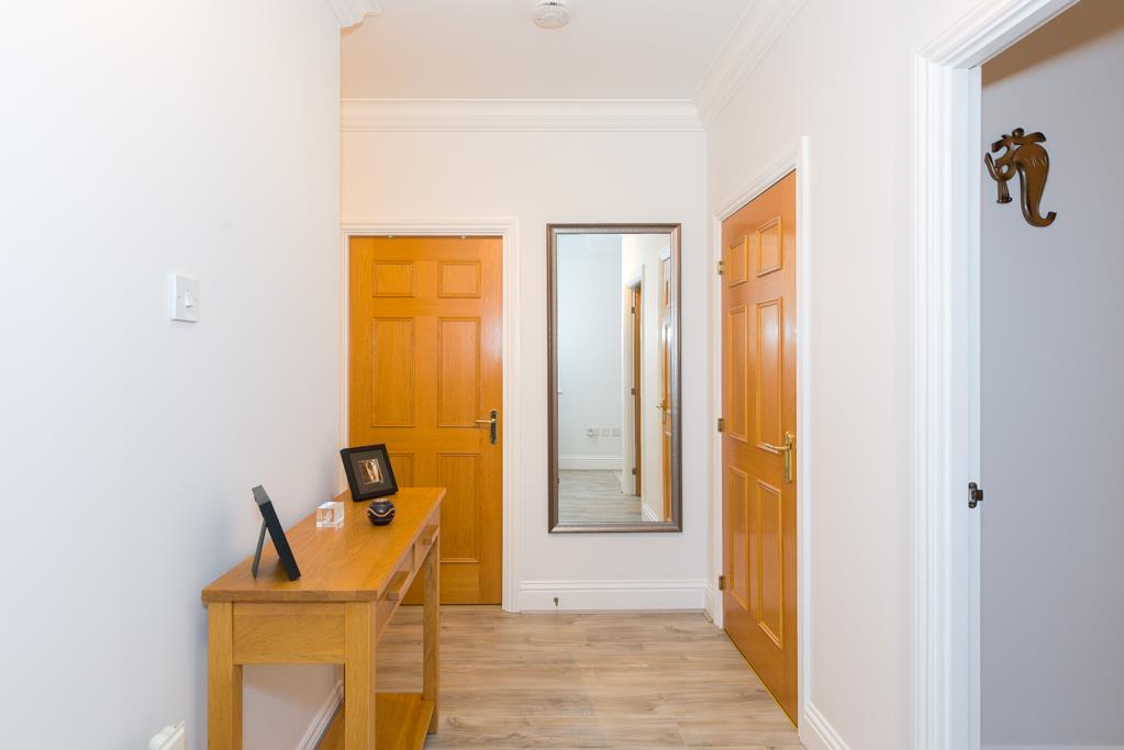 Accessed via double gates with a security entry system there are two allocated parking bays and a communal hallway leading to this well positioned home.
