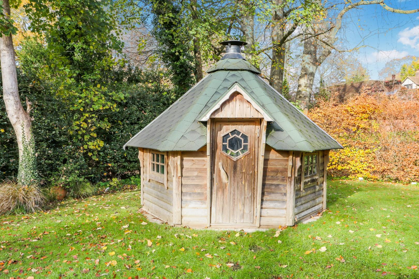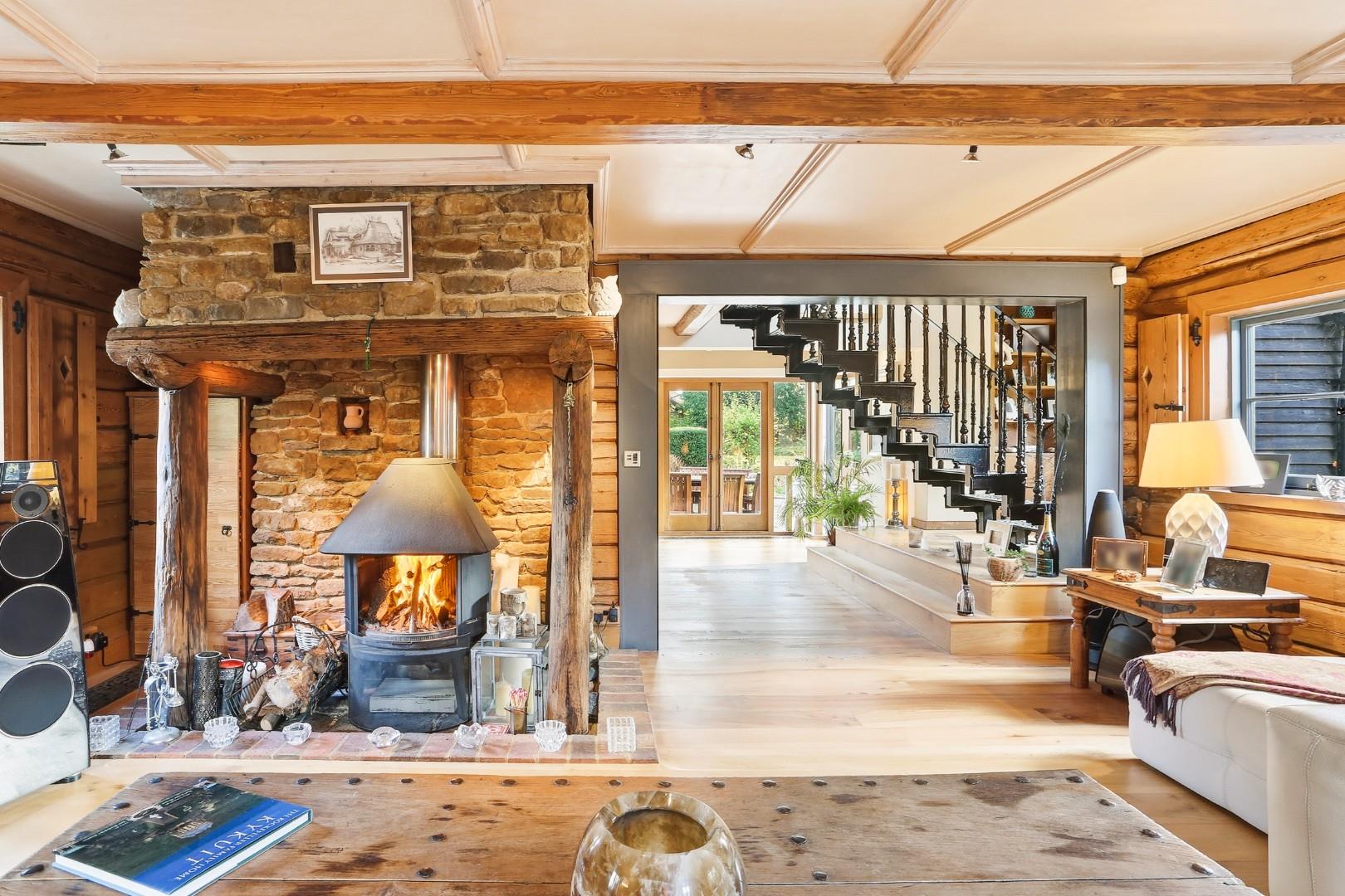 The striking log cabin at the heart of the property was imported from Russia in 1869 by the Cattley family and is believed to be the only original Russian cottage in the UK. The surrounding properties were later developed in a distinctive style by the Garle family, forming what is now known locally as Russian Valley, a designated conservation area.