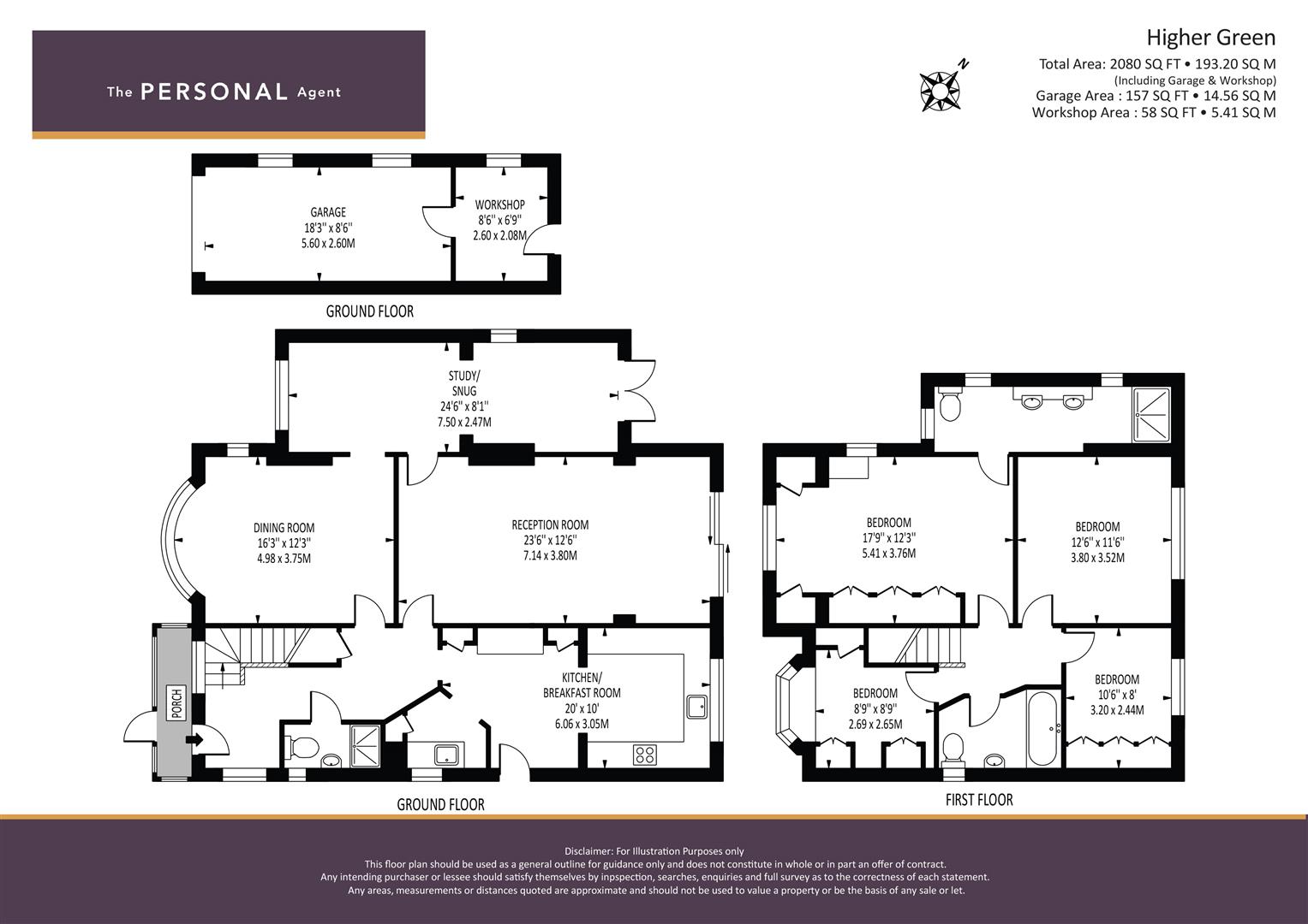 - Large driveway with garage & workshop