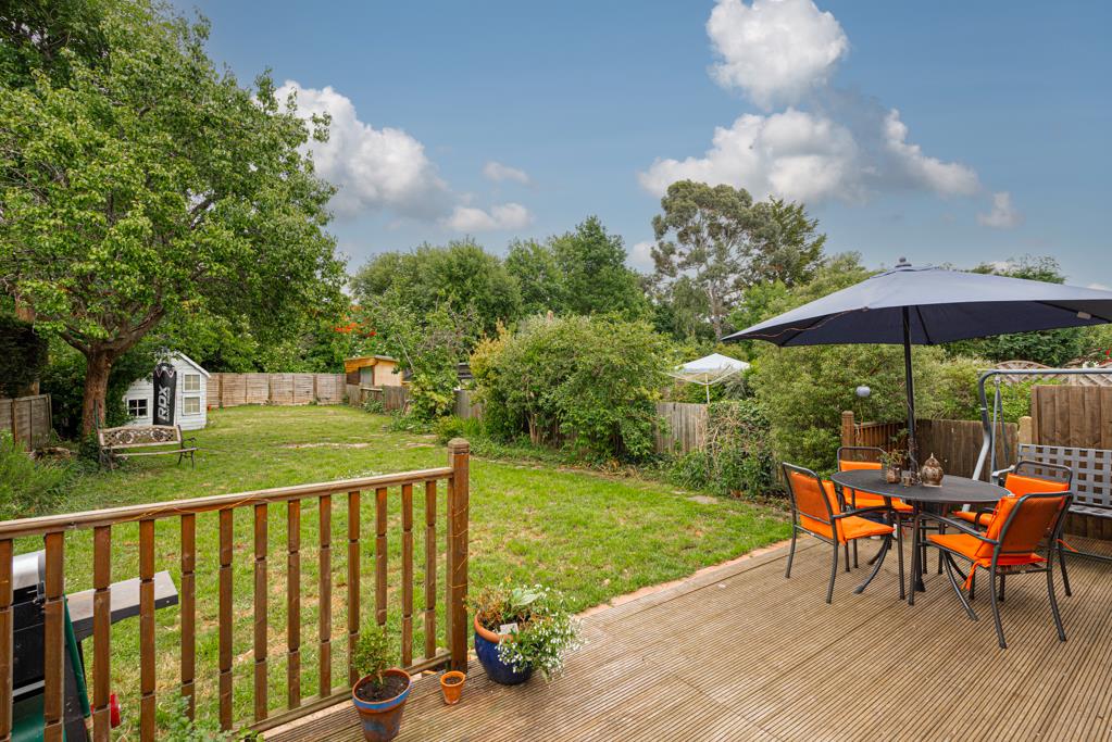 The driveway to the front provides parking for at least two cars, while the lawned garden to the rear measures over 91ft in length.