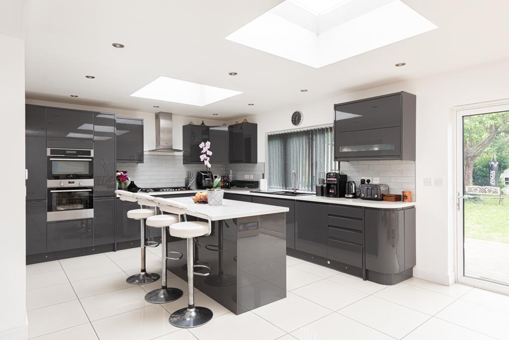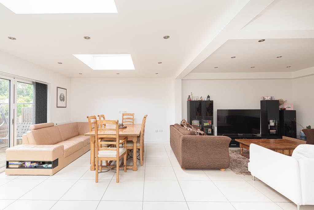 The property boasts an enormous open plan kitchen / dining / living space to the rear with maximum measurements of over 28 x 26ft and bi folding doors to the garden. Off the kitchen is a utility room and a downstairs shower room.