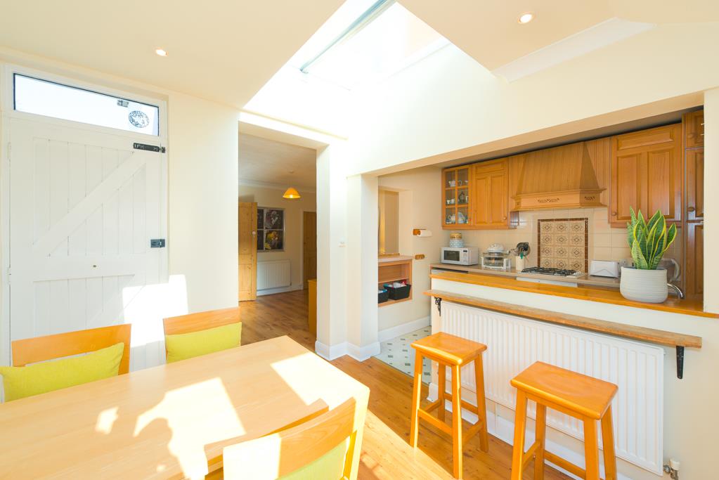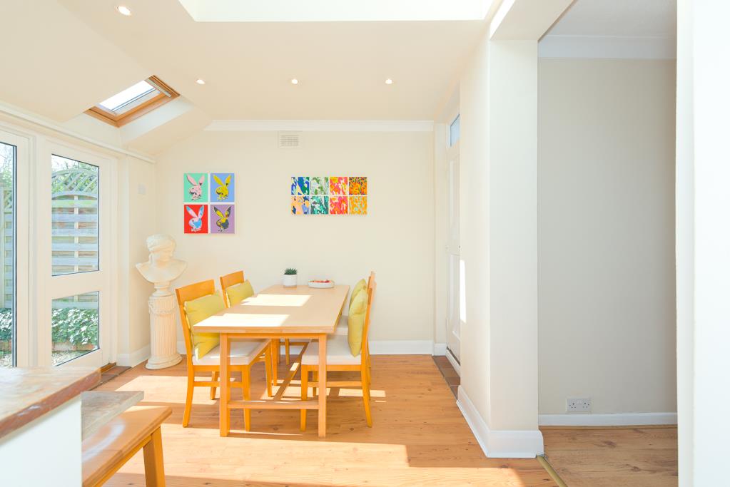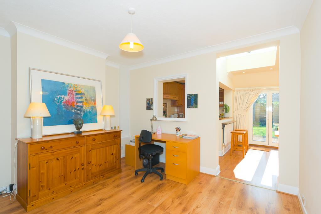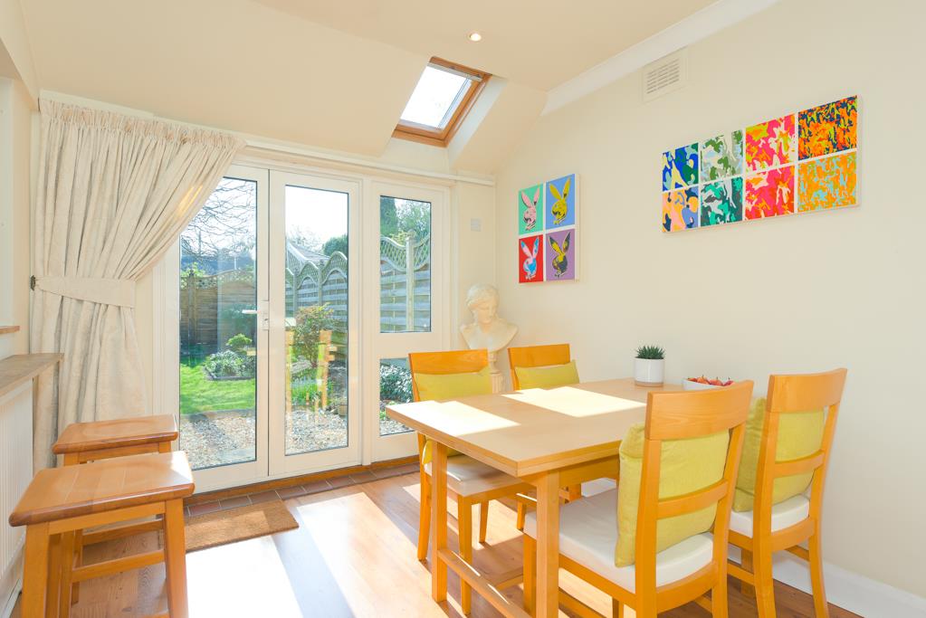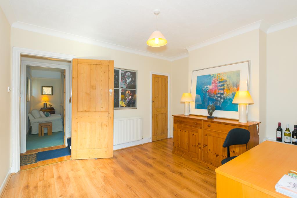 On the ground floor the property enjoys a living room, sitting room and a dining room that links to the kitchen and also has French doors to the garden. The ground floor is completed by a downstairs white bathroom suite and a large understairs storage cupboard.