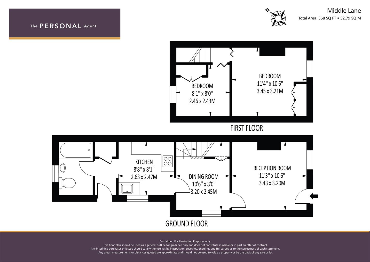 - Two reception rooms