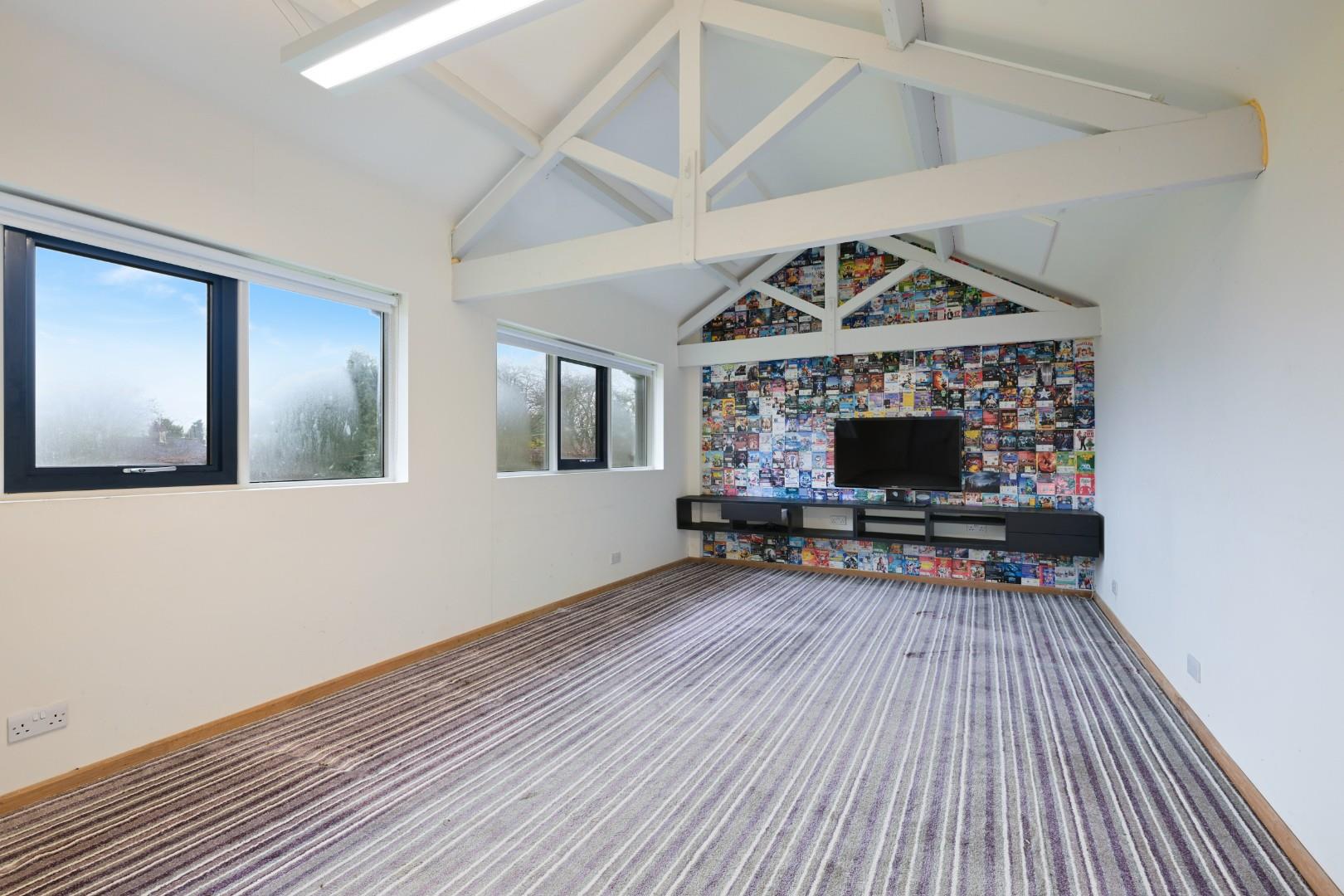 In addition to the generous living areas, the property includes a double garage, offering secure parking and additional storage options. Furthermore, a substantial outbuilding measuring 22’3 x 12’ provides excellent potential for further use, whether as a workshop, studio, or additional storage.