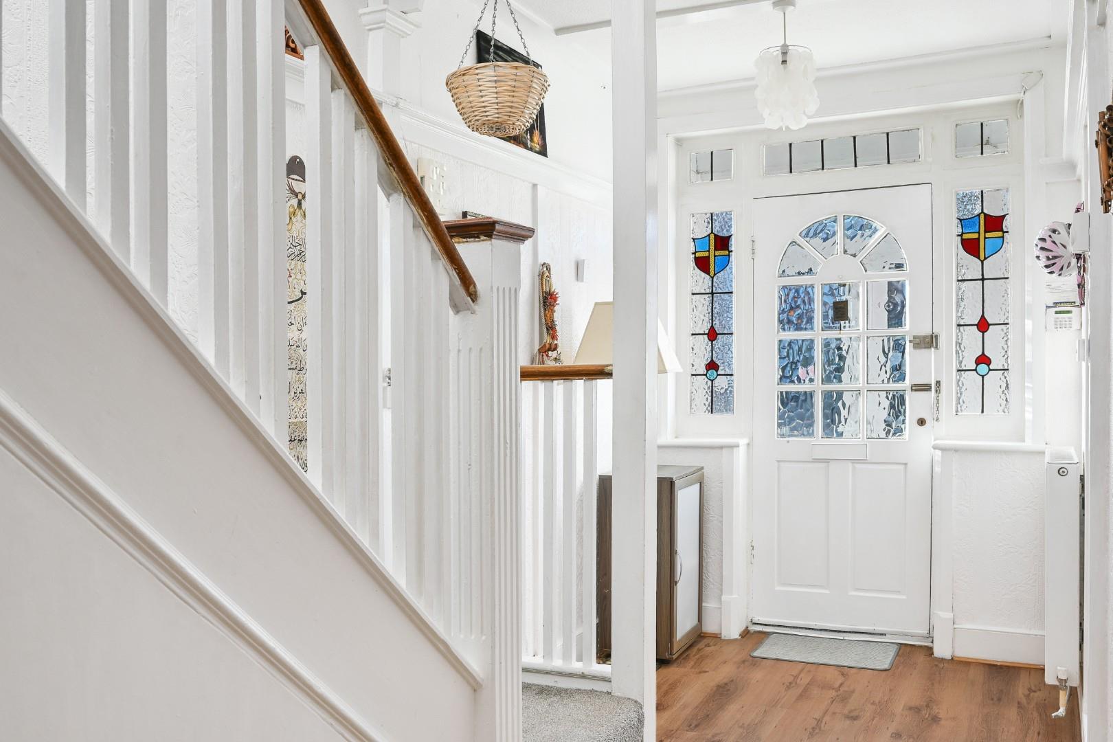 The property is approached via a lawned front garden with a block paved driveway providing generous off street parking and access to a detached garage and a secure gated pathway leading to the rear garden. You enter the home via an enclosed entrance porch opening into a generously sized hallway.