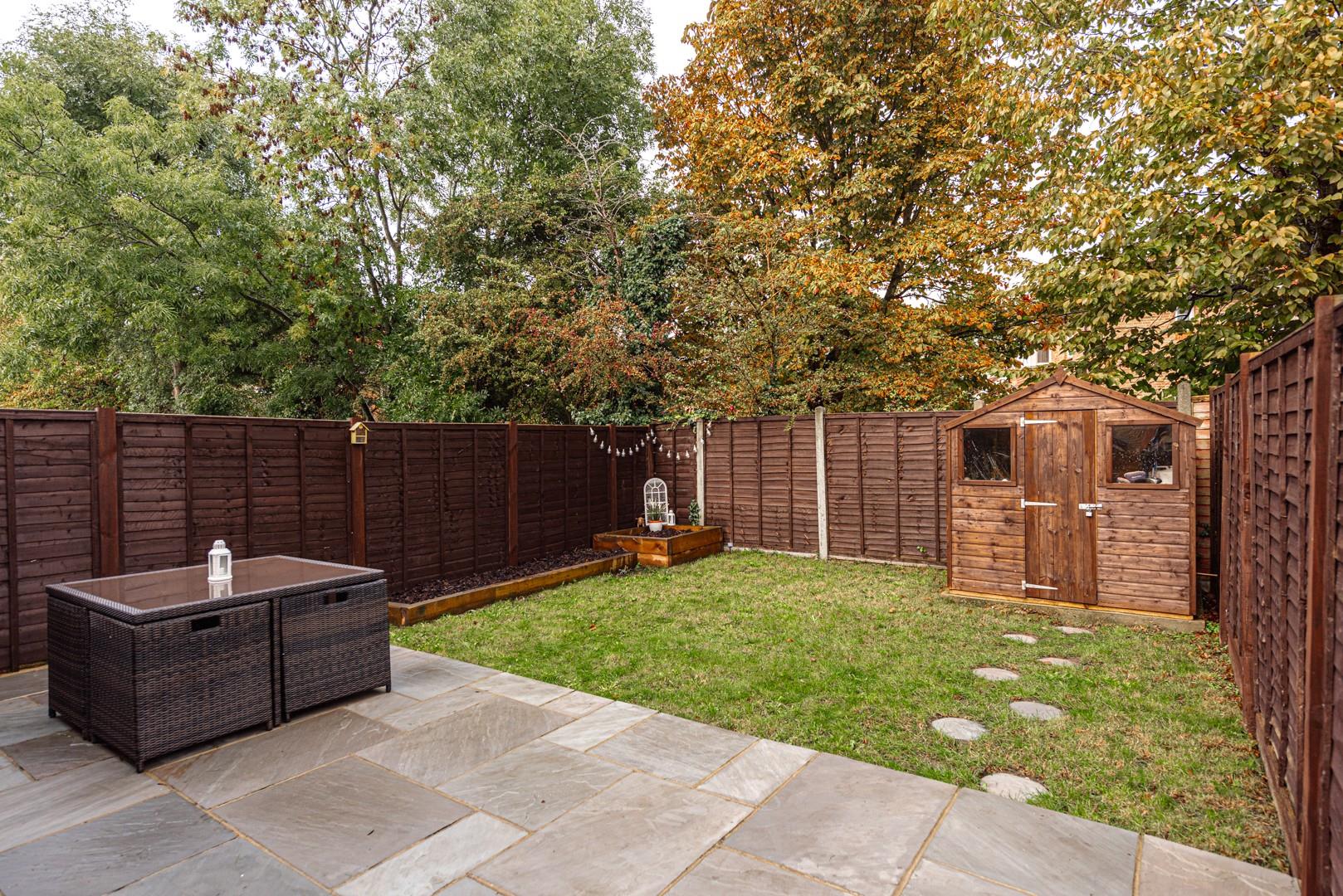Externally the property offers a private and well landscaped west facing rear garden which is complete with a large patio area and storage shed.