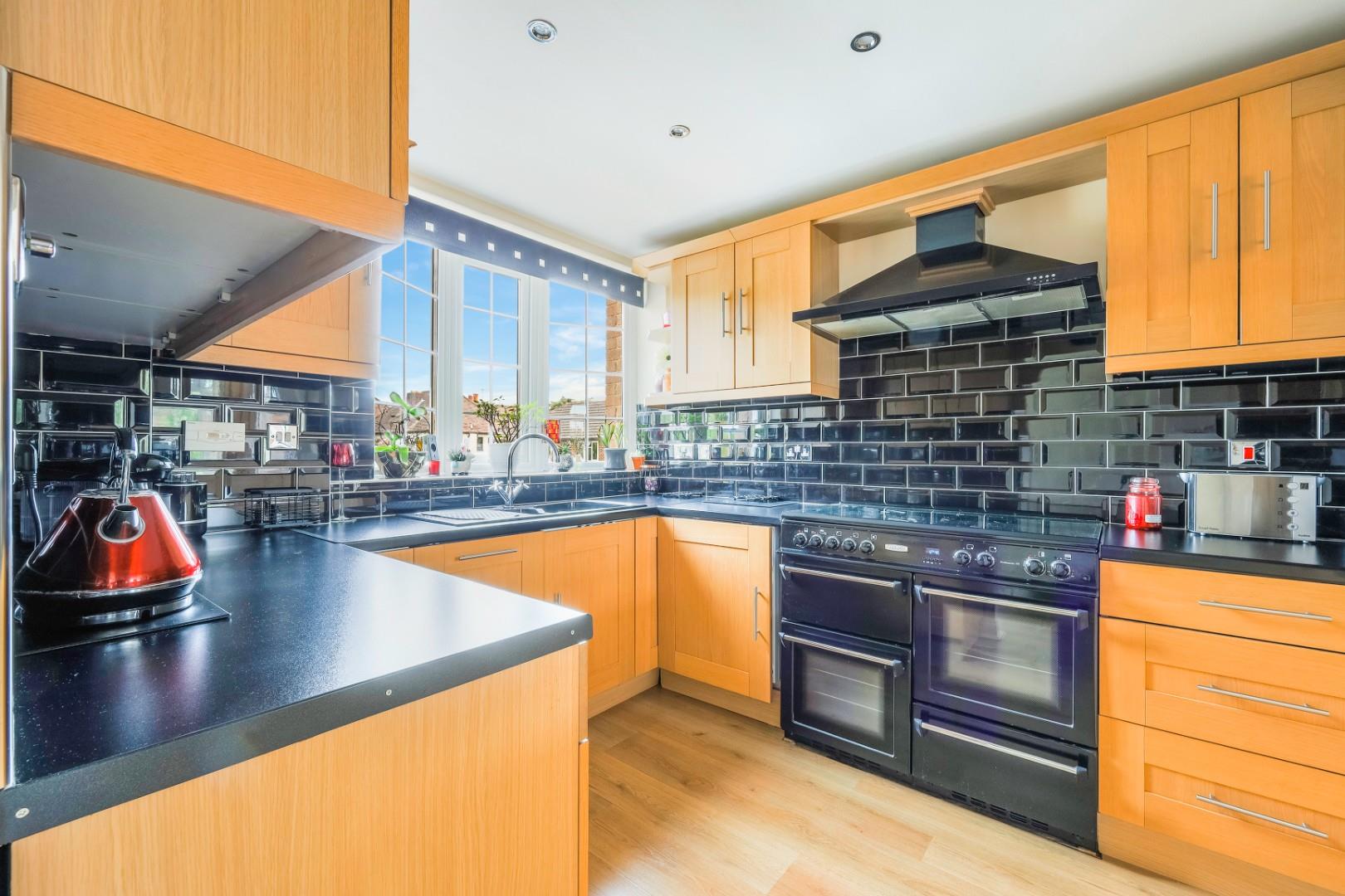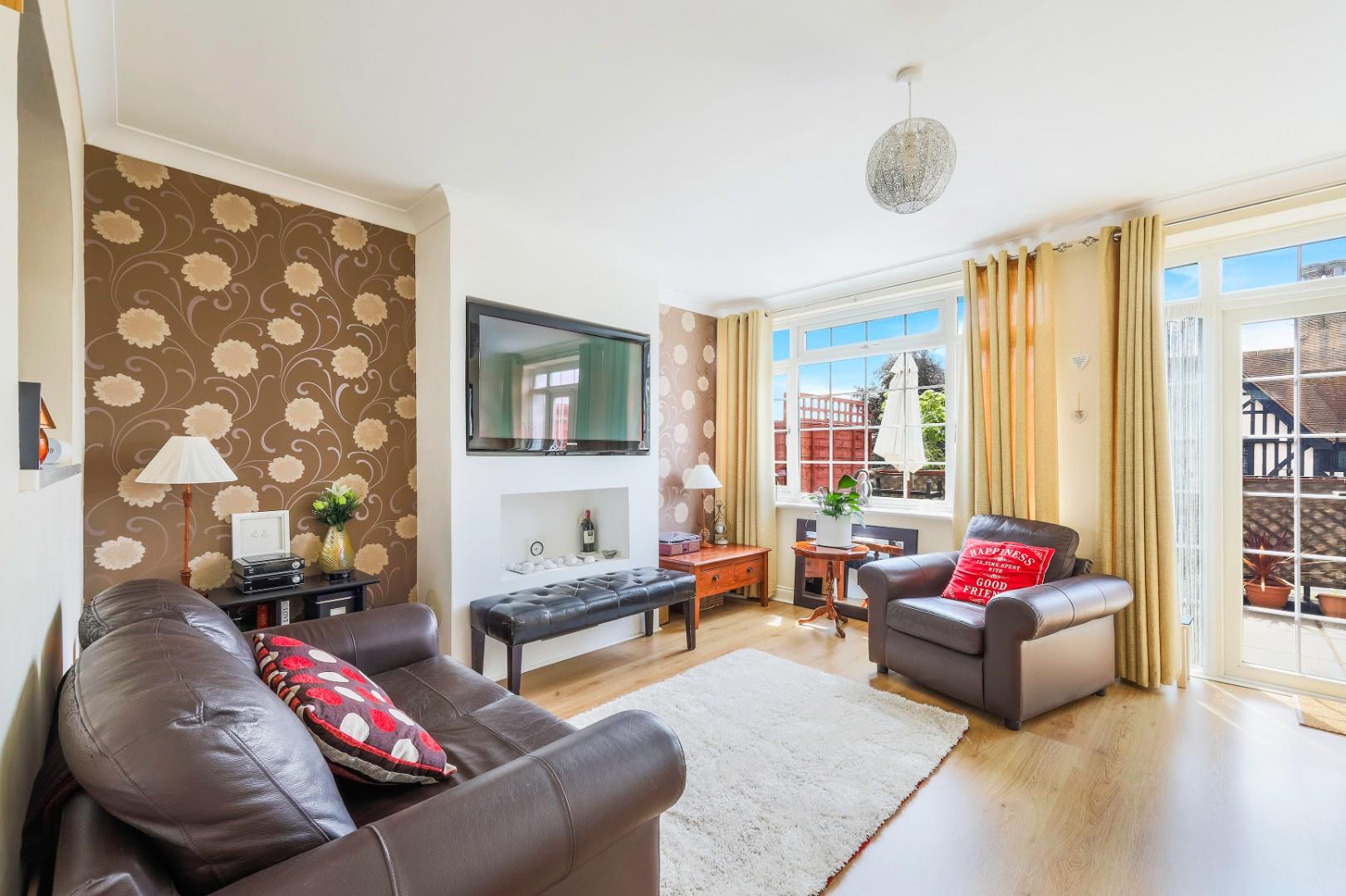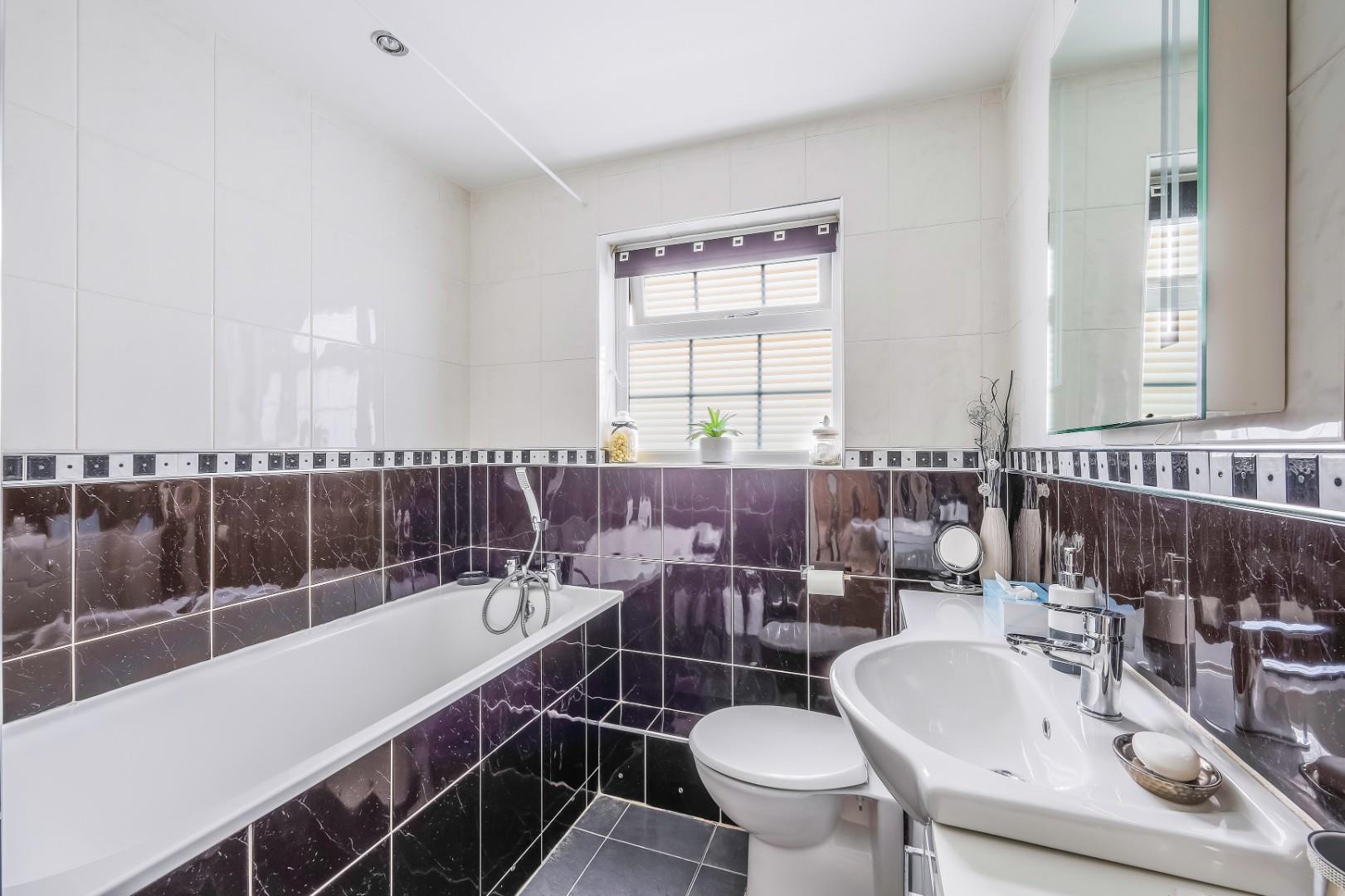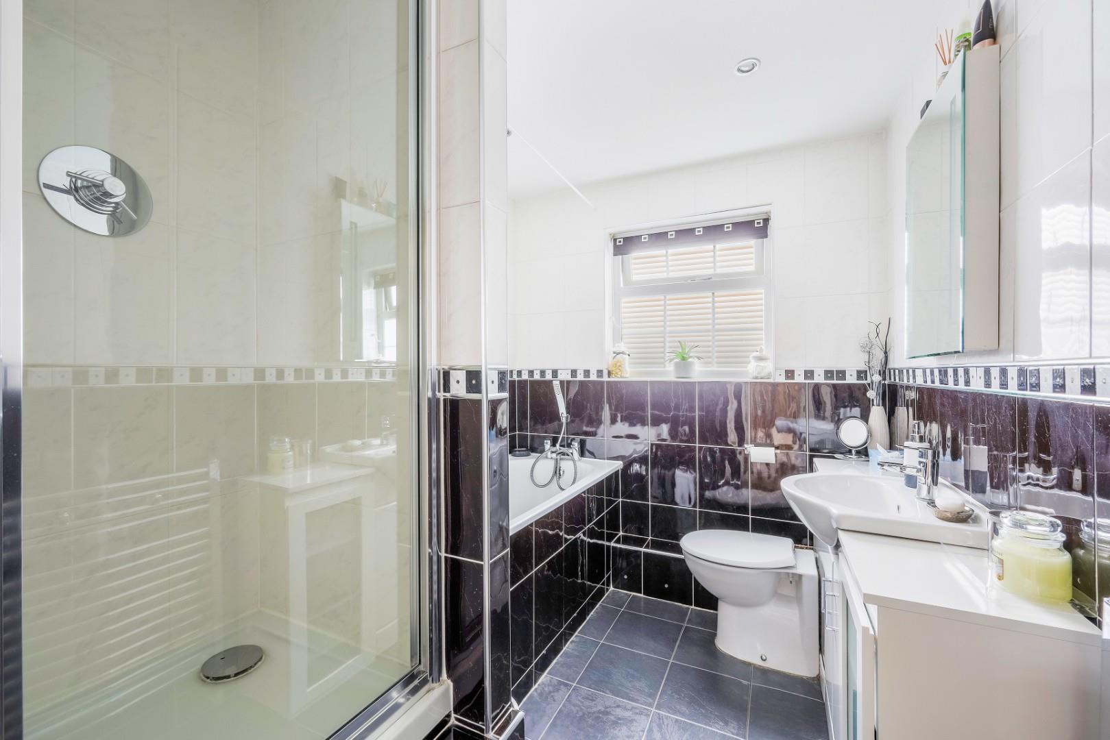 Upstairs are two generous double bedrooms with fitted wardrobes, and the family bathroom with a separate shower cubicle and bath.