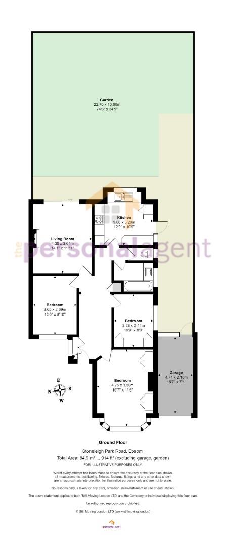 The Personal Agent are pleased to present this three bedroom semi-detached bungalow, situated just a short walk from Stoneleigh Broadway and Mainline railway station as well as local schools.
