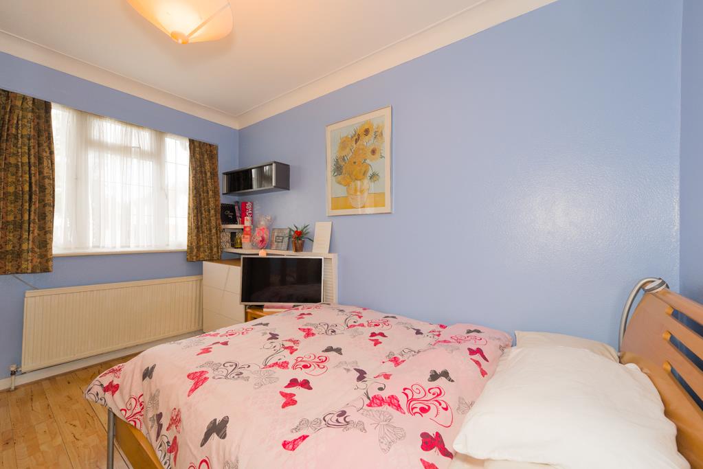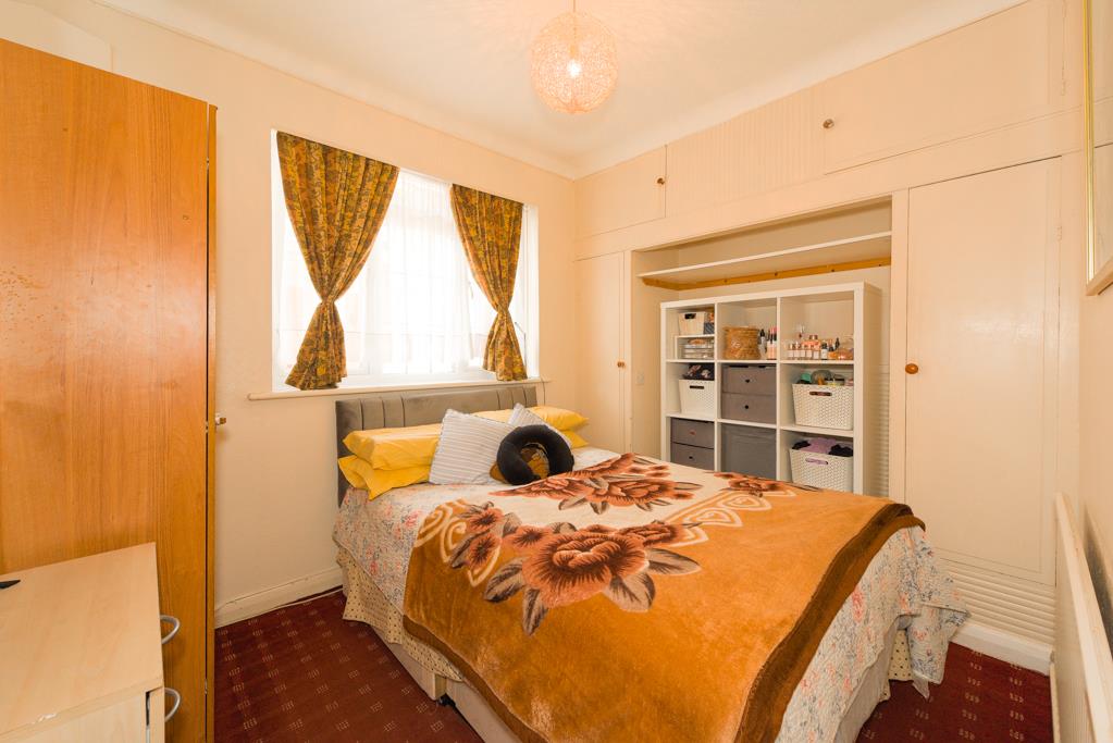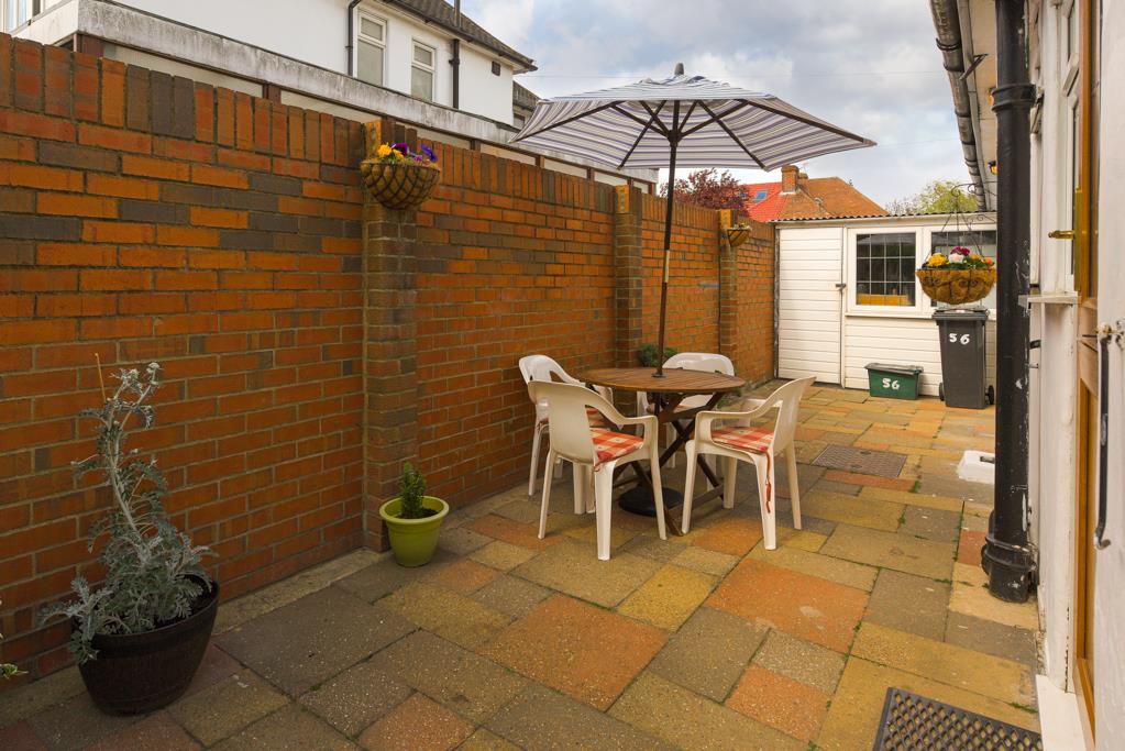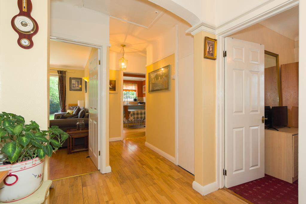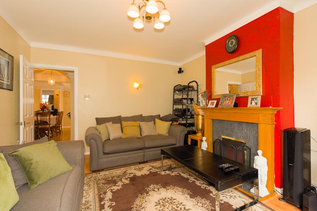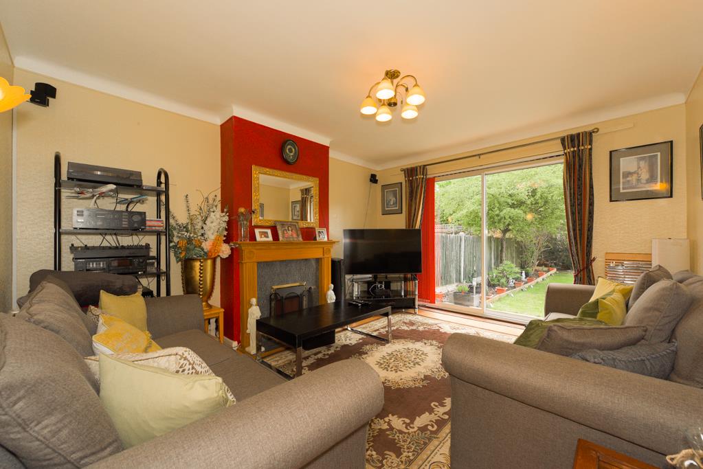 The property comprises an entrance hall with access to built-in storage, the hall is extremely spacious and is currently being used as a dining area, 14ft rear aspect living room with sliding doors overlooking and opening onto the garden with a feature fireplace, 12ft kitchen/breakfast room with a window overlooking the garden and a door to the side, the kitchen comprises a range of eye and base level units with built-in oven and hob.