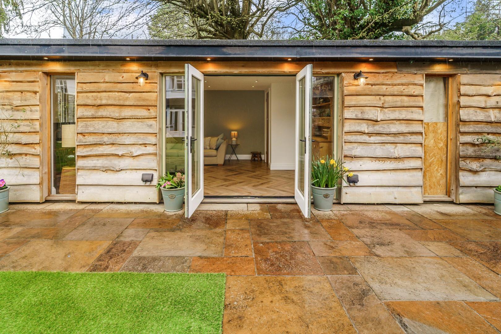 - Detached garden room with wet room & flex space
