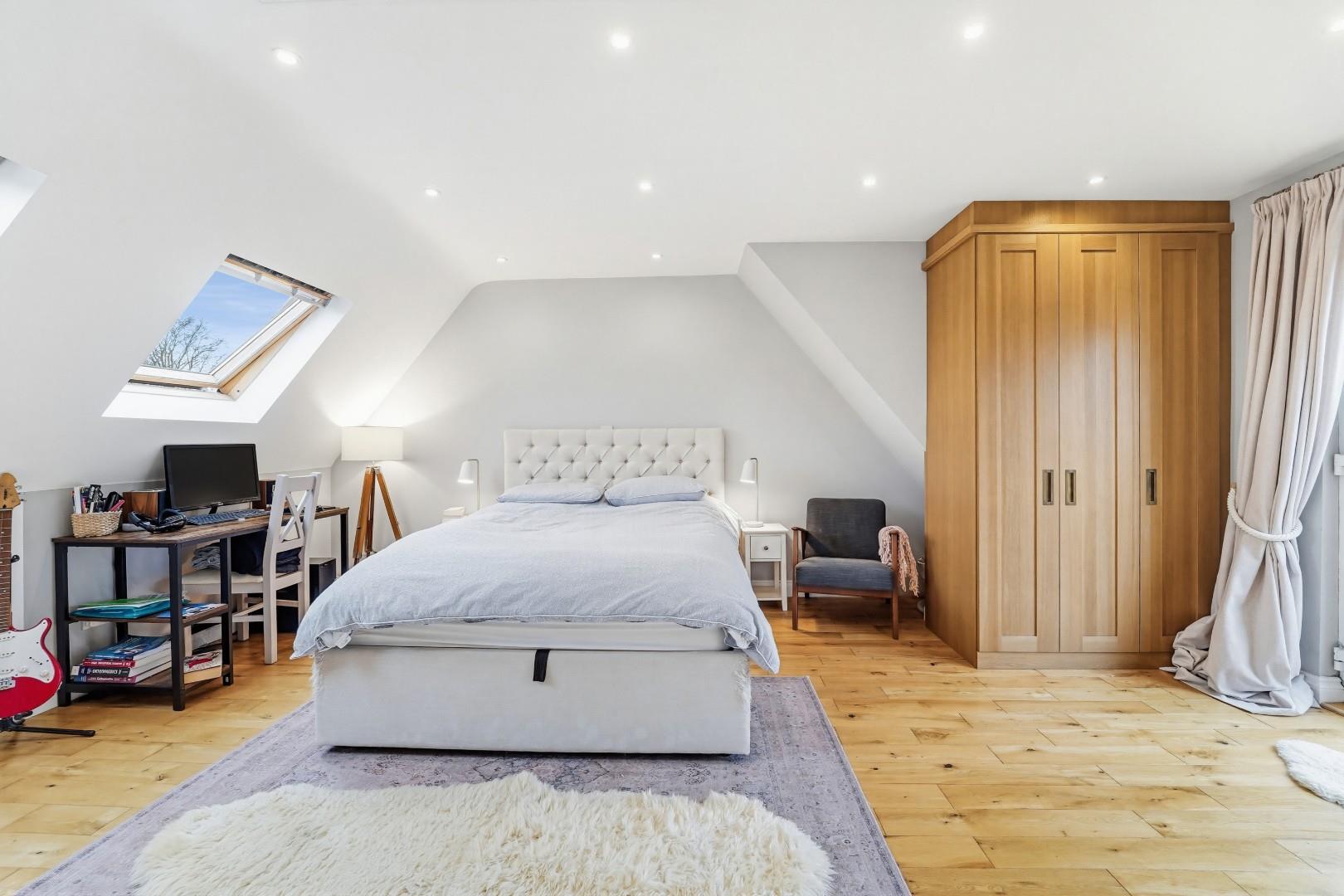 The primary bedroom is a true highlight, featuring an en suite bathroom complete with underfloor heating for added comfort. A charming juliette balcony offers lovely views over the well-maintained 51' x 32' rear garden, creating a serene outdoor space for enjoyment.