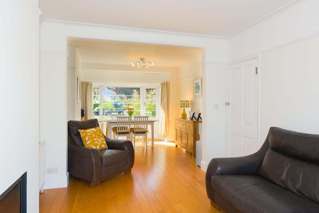 The property comprises an entrance hall with access to understairs storage, storage cupboard housing the boiler and doors to; front aspect living room with large windows allowing in plenty of light, 15ft rear aspect dining room with windows, patio doors opening to the garden and a feature fireplace. The kitchen comprises a range of eye and base level units with integral oven and hob, with a door to the garden.
